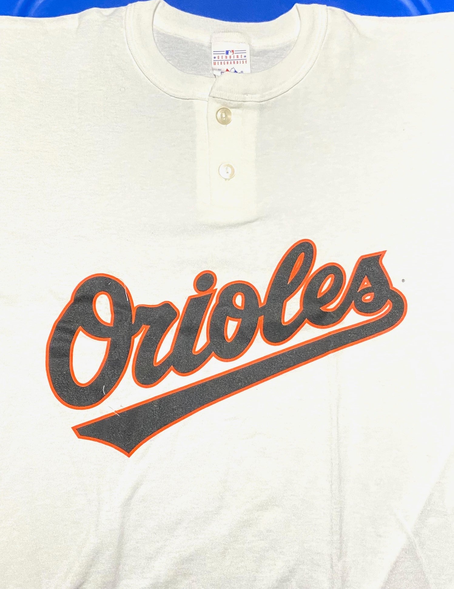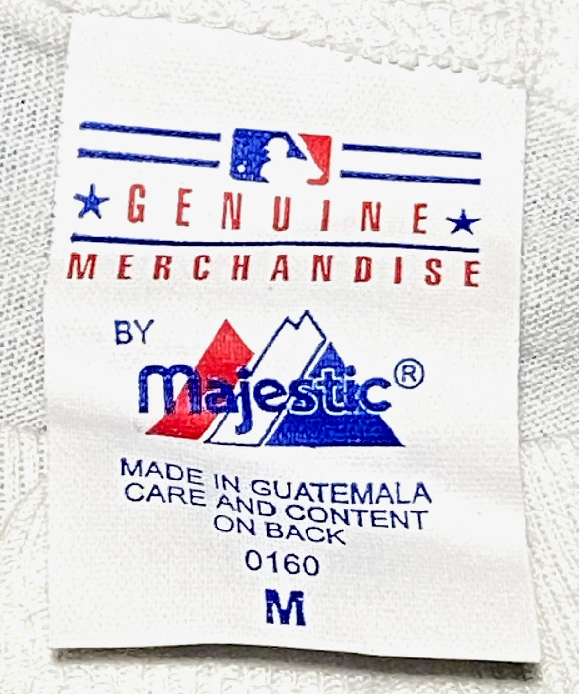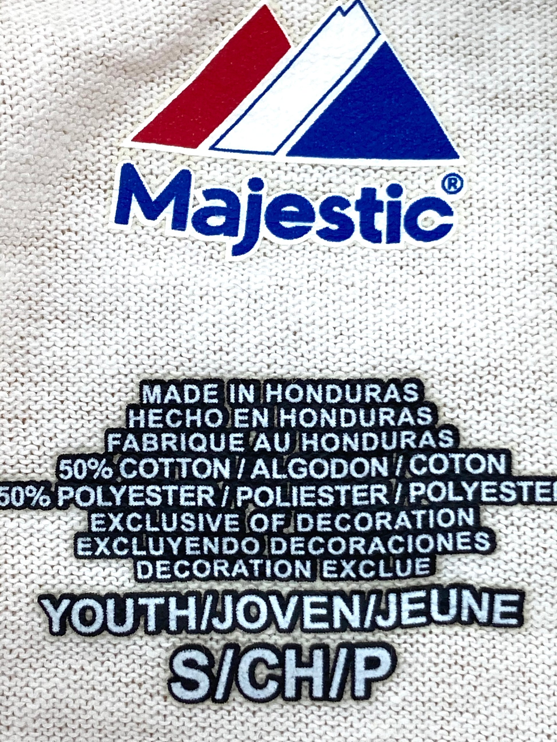 Here is a fabulous 50% cotton/50% polyester tee that your child (youth size small) will simply love! Also, we offer adult mediums as well! The white button-down top with the traditional Orioles script logo makes for a great tee. And, being made by Majestic, you know it's a great product. For the youth small tee, we measured across the chest and got 16 1/2 inches; from top-to-bottom, we came up with 20"; see how that compares with your child's current clothing. As for the adult medium tee, we got 20" across the chest and 30" from top-to-bottom. The youth small was made in Honduras and the adult medium was made in Guatemala.