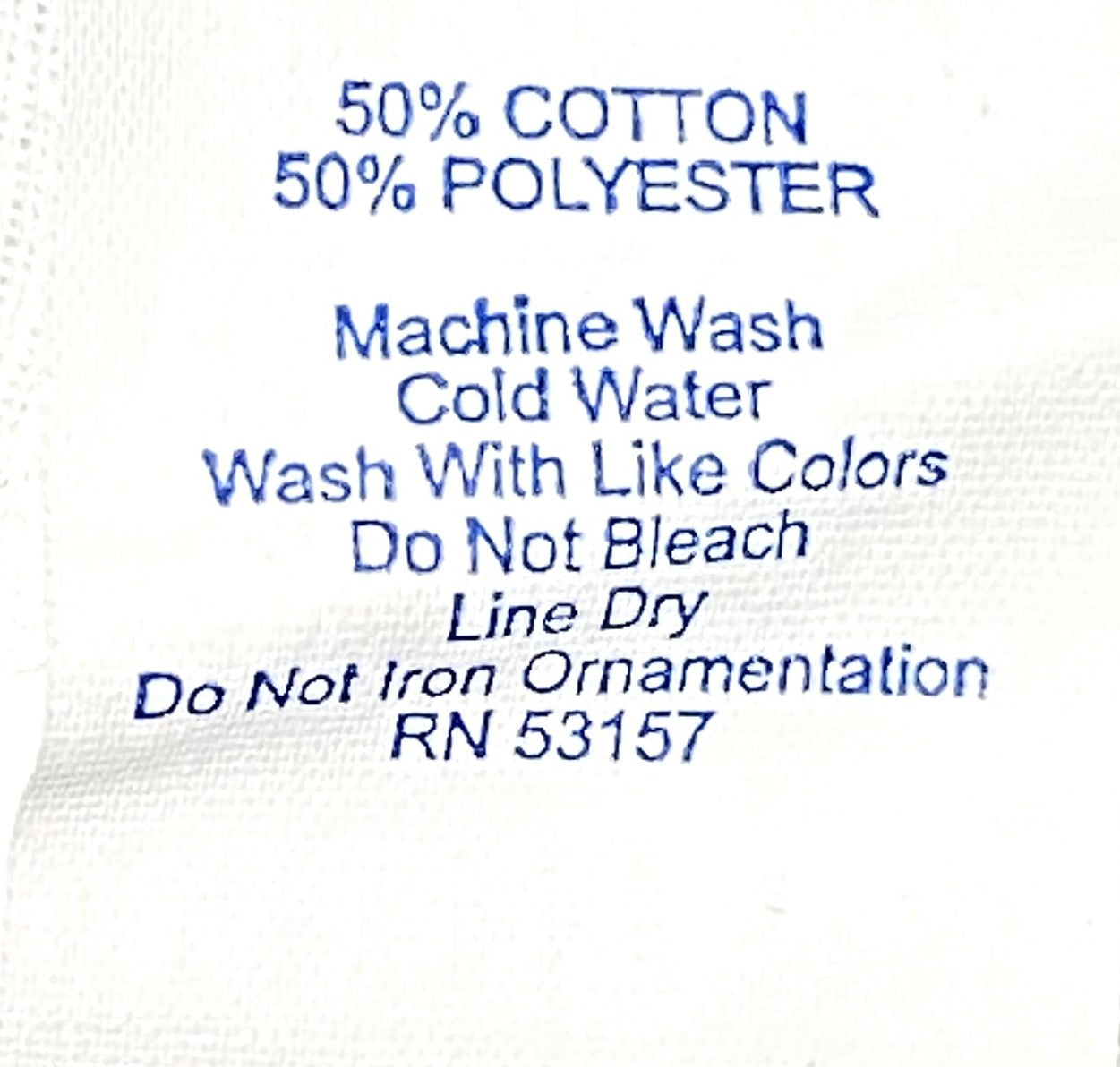 Care instructions: Machine wash cold water with like colors -- Do not bleach -- Line dry -- Do not iron ornamentation --