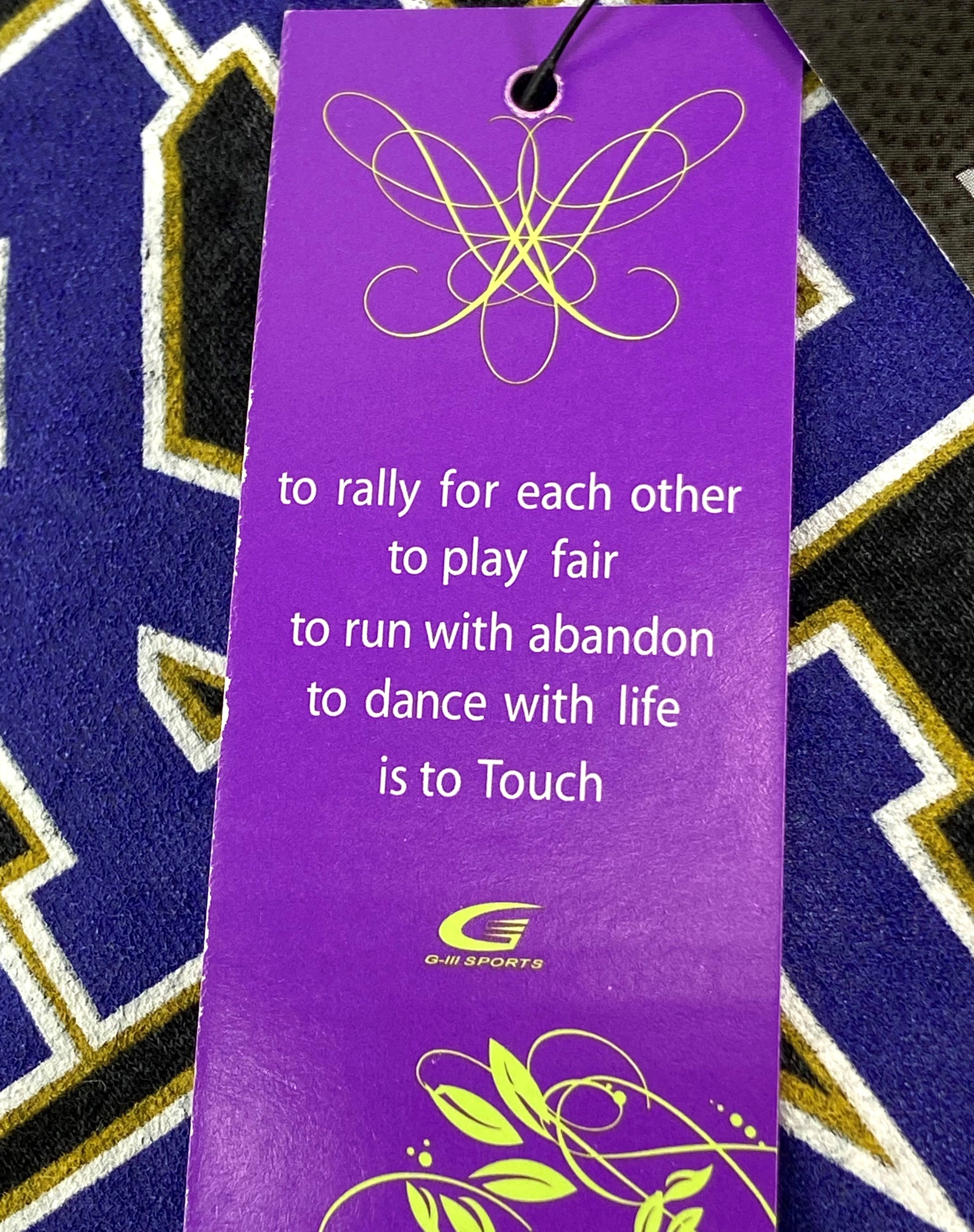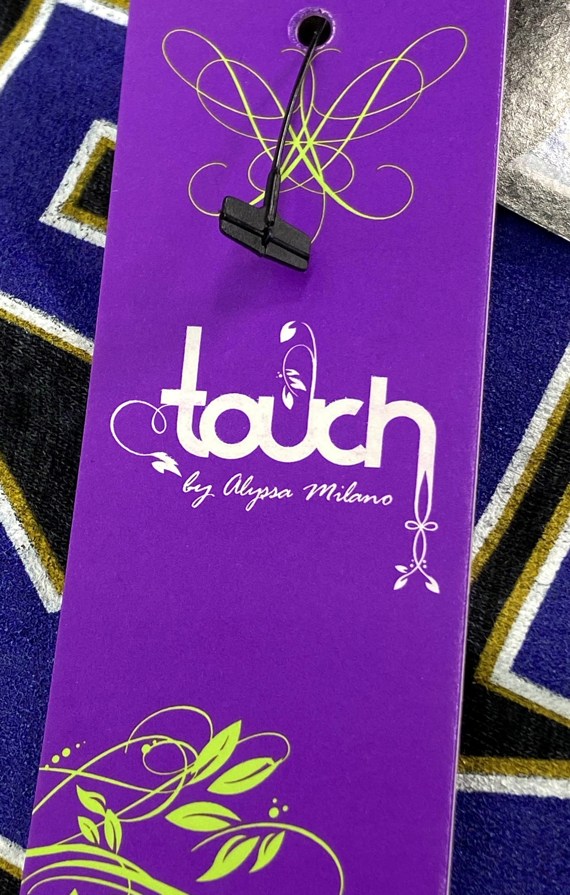 Embrace Baltimore's "Play Like a Raven" attitude with this trendy NOS t-shirt! Featuring a stylish design, this small size shirt measures 18" across the chest and 24" from top to bottom. Created by Alyssa Milano, this top is 51% Polyester, 39% Cotton, and 10% Rayon for a comfortable fit. Don't wait, check out the photos and add this must-have to your collection today! Made in China.