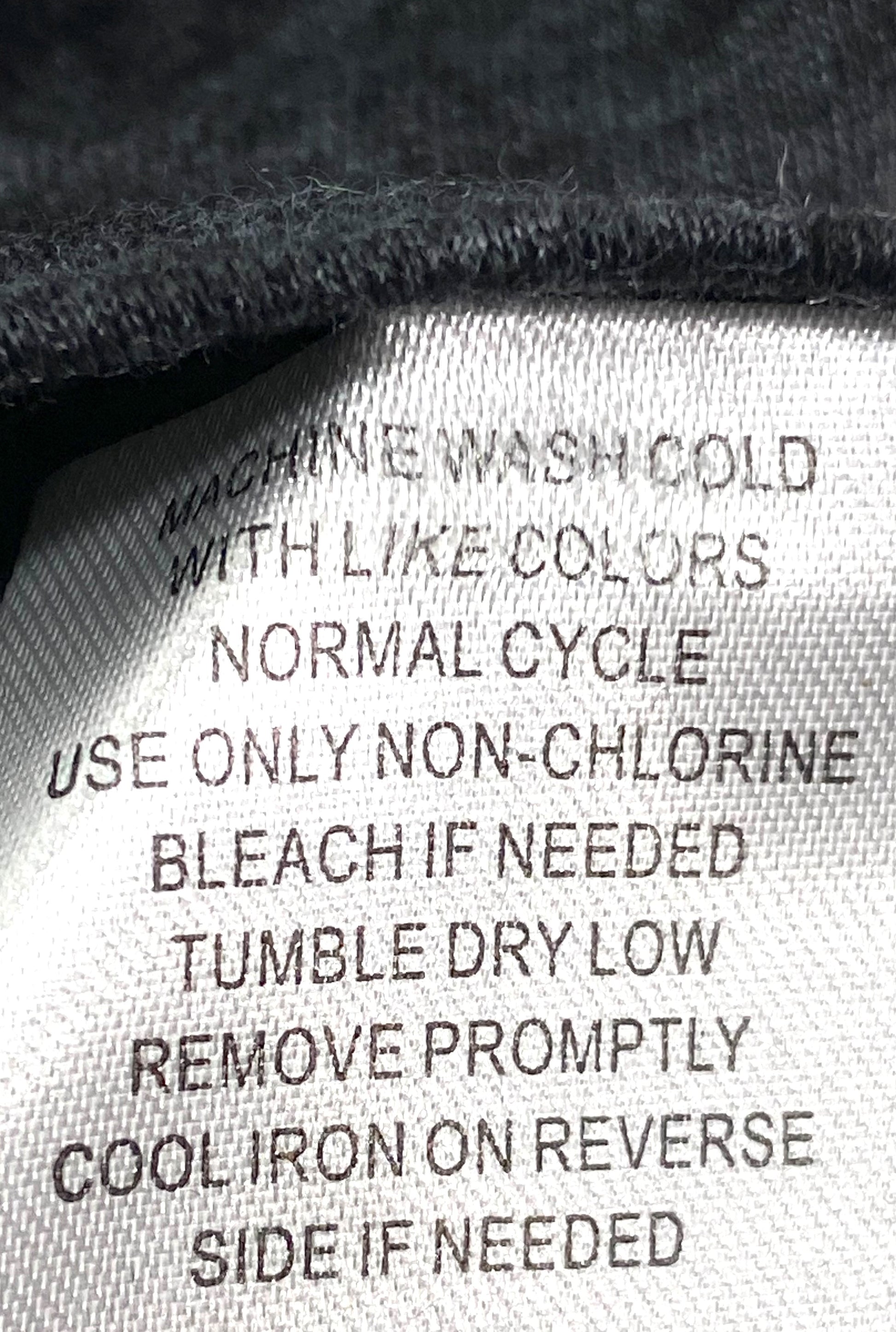 Care instructions: Machine wash cold with like colors -- Normal cycle -- Use only non-chlorine bleach if needed -- Tumble dry low -- Remove promptly -- Cool iron on reverse side if needed --