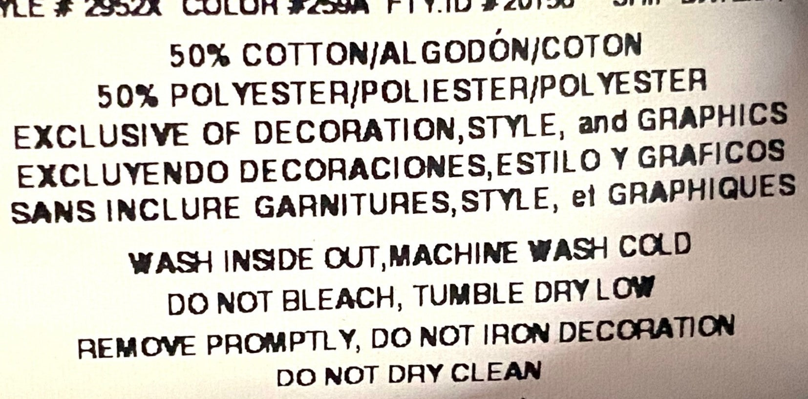 Care instructions: Machine wash cold with like colors -- Only non-chlorine bleach when needed -- Tumble dry low -- Warm iron if needed --