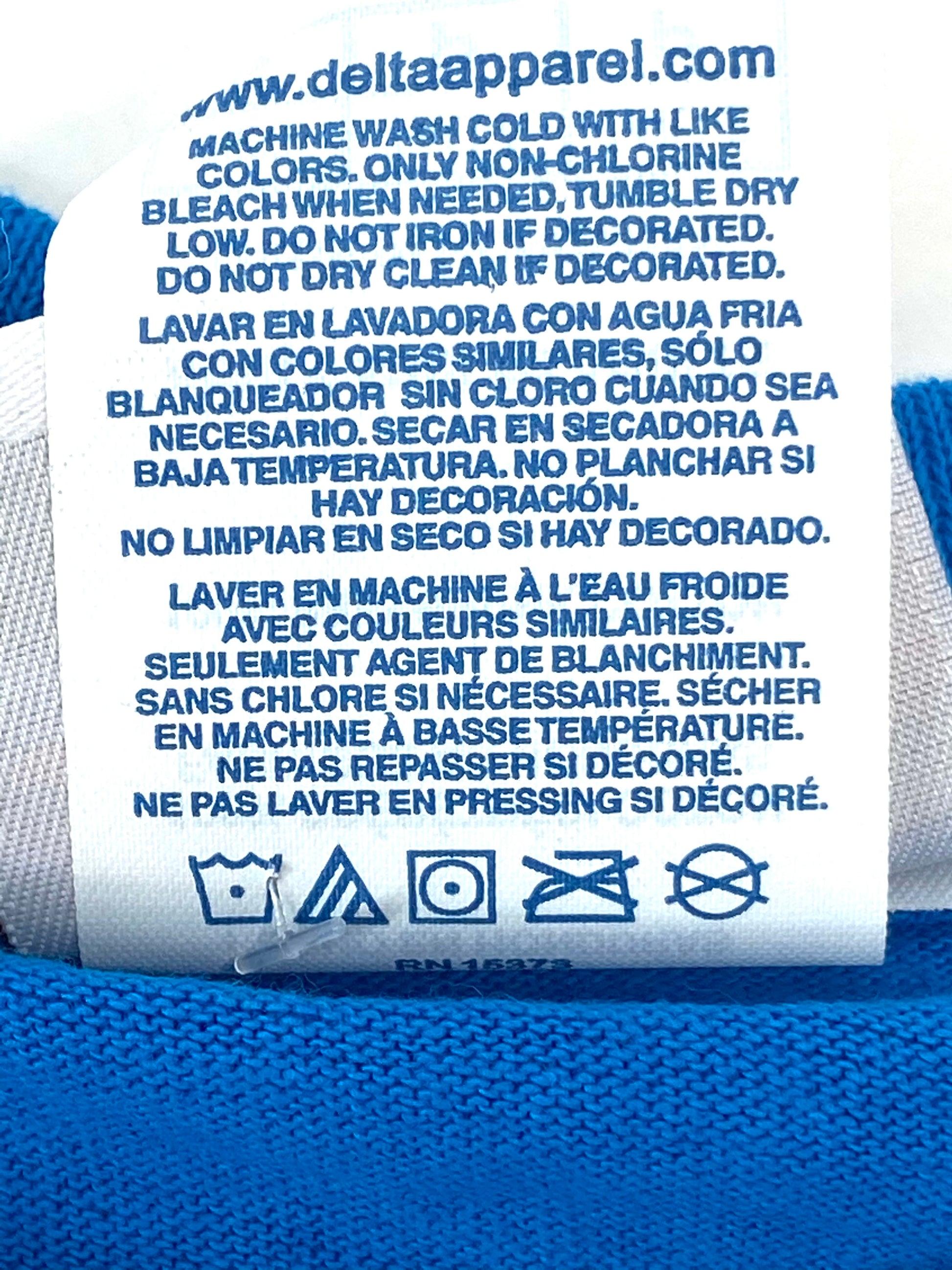 Care instructions: Machine wash cold with like colors -- Only non-chlorine bleach when needed -- Tumble dry low -- Do not iron -- Do not dry clean --