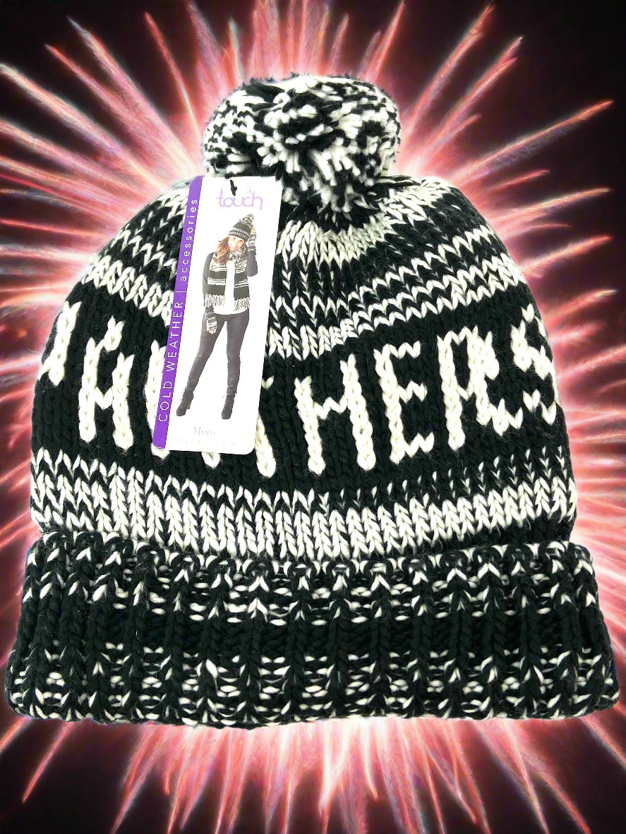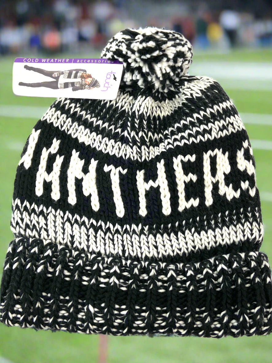 Combine style with comfort when you get your hands on one of these stunning Panthers acrylic hats by Alyssa Milano. These are quite popular (as you've probably noticed around town) and really do the job in chilly weather. Or wear them in not-so-chilly weather to simply make a fashion statement. Either way, you'll look great! 100% acrylic. China.