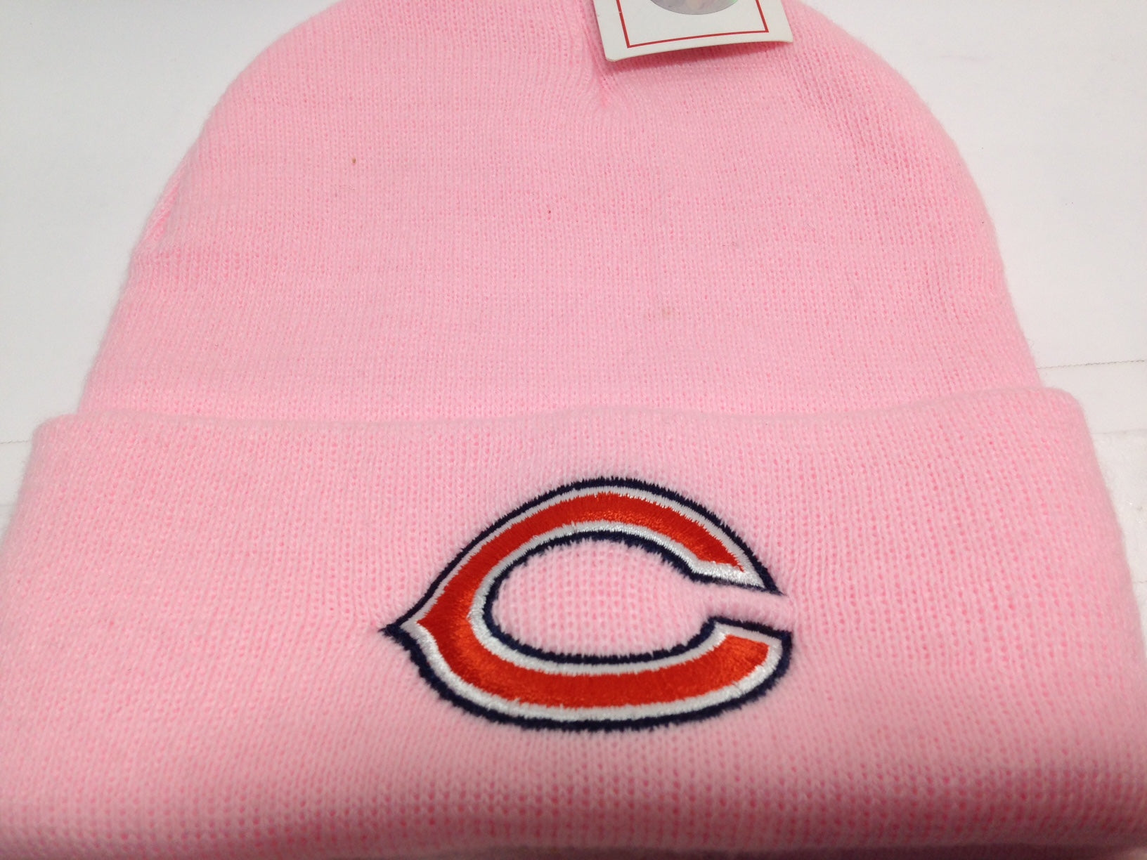 Unleash your bold side with this Chicago Bears 2015 NFL Ladies Pink Cuffed Knit Logo Hat! This officially licensed hat NOS (New Old Stock) gem features an embroidered team logo in the bold team color on a pink knit made of 100% turbo acrylic. Don't wait - claim it now from Yupong China and make her day!