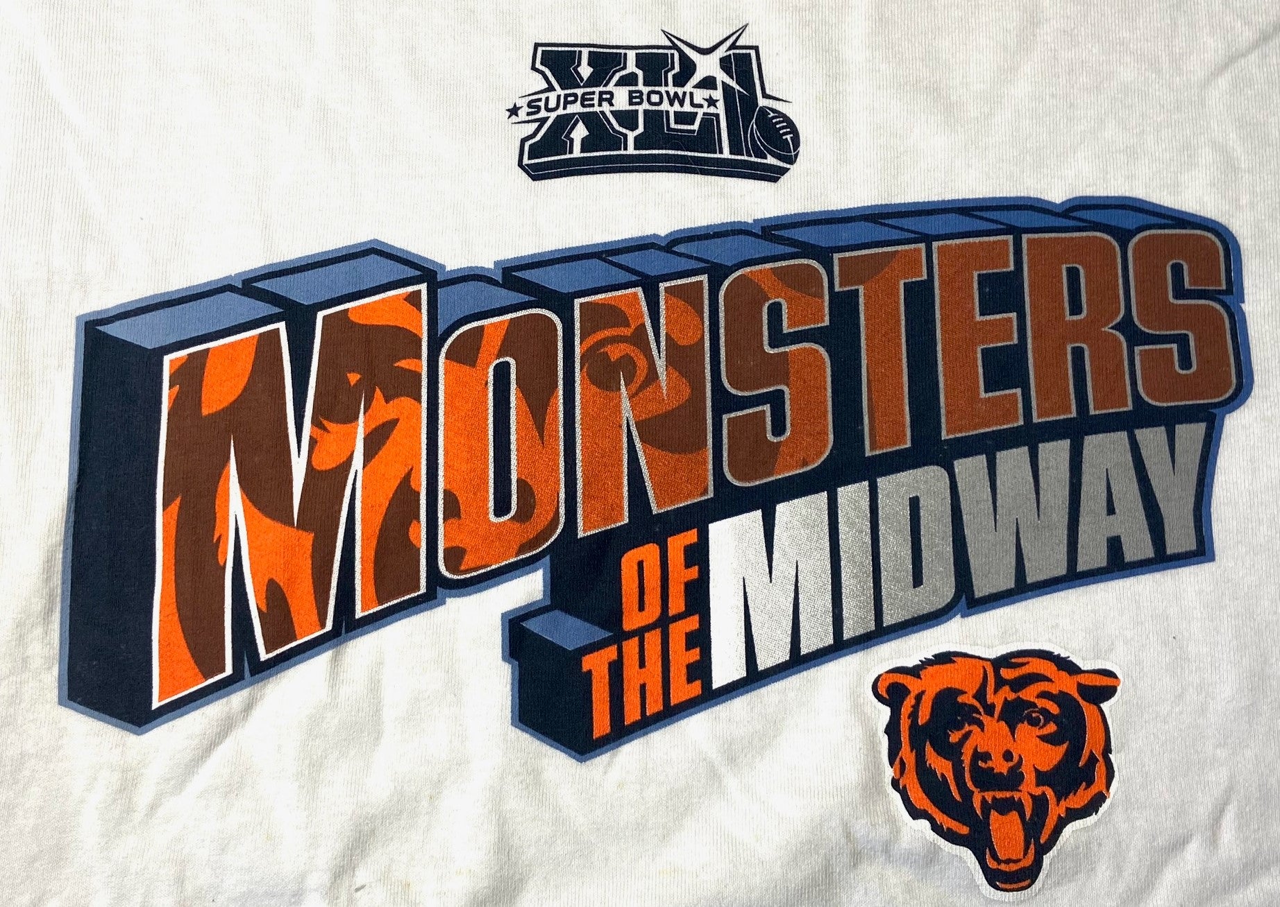 Chicago Bears "Monsters of the Midway" 2007 Super Bowl Adult XL White NOS T-Shirt