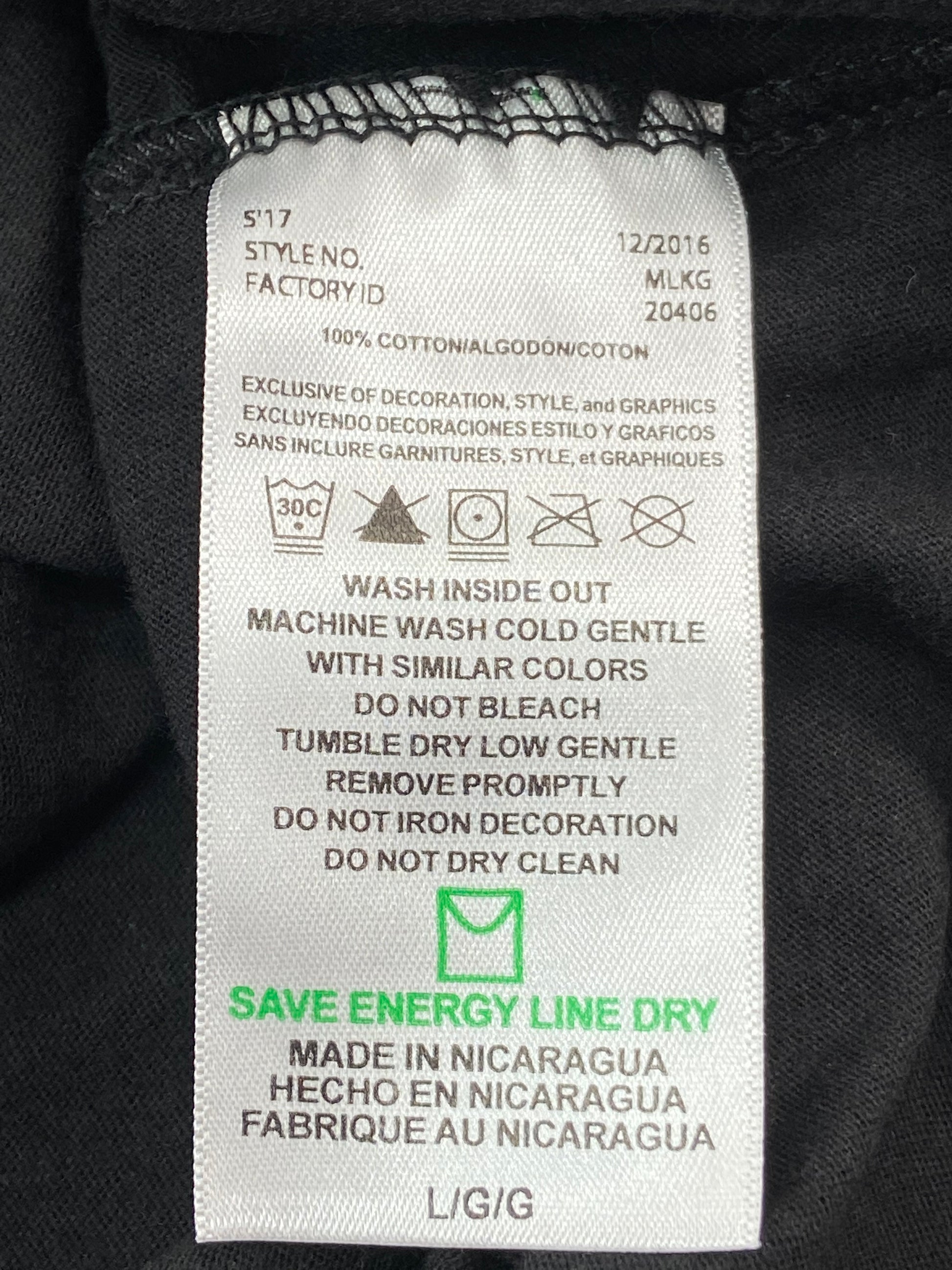 Care instructions: Wash inside out -- Machine wash cold -- Gentle with similar colors -- Do not bleach -- Tumble dry low gentle -- Remove promptly -- Do not iron decoration -- Do not dry clean --