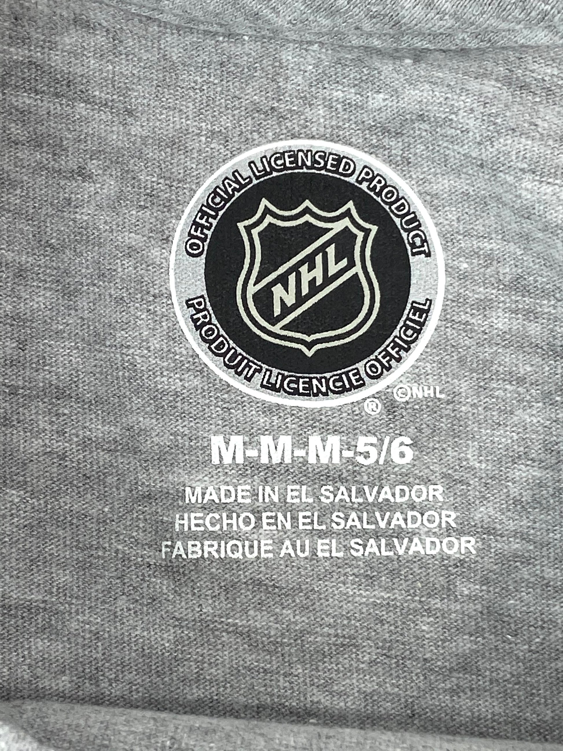Here's a great NOS (New Old Stock) youth tee that will thrill any kid who is a Blackhawks fan. The traditional 'Hawks logo on a gray tank looks sweet, and we're sure you'll be quite pleased with this item. It's new, 90% cotton and 10% polyester, and was made in El Salvadore. We measured across the chest and it came in at 14" across and 18 1/2" down. Check these against the shirts your child is currently wearing for comparison and ordering accuracy.