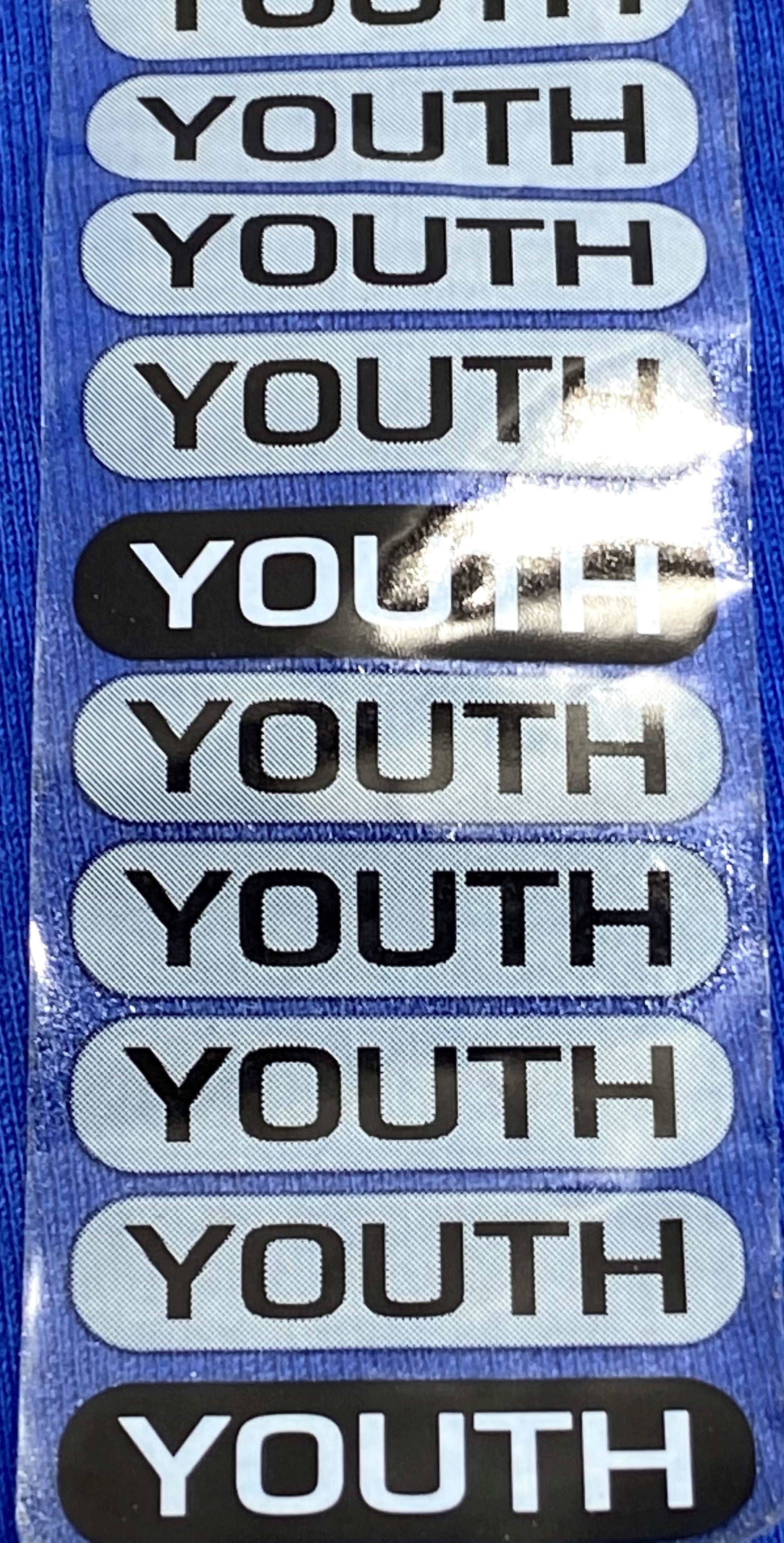 Lastly, notice in the photos there is one other difference between the youth large and adult small: When they print the youth shirts, they scale down the size of the print because they go all the way down to youth small, and they need to be able to fit the print on a youth small t-shirt without changing the size of the setup. So, even though the youth large and adult small have the same width to start, the print on the adult small is noticeably larger. Whew! Just wanted to be clear on that.