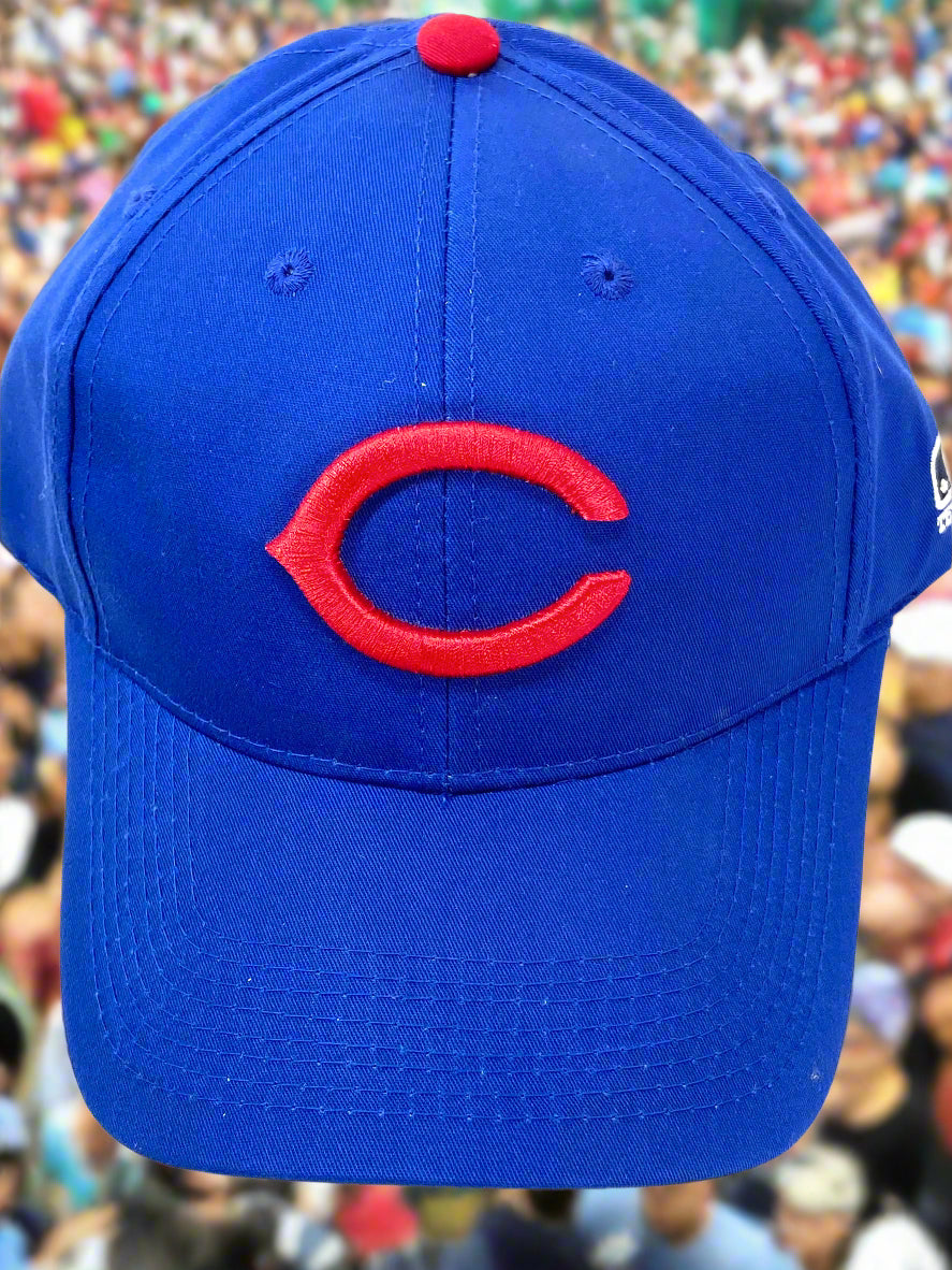 Not too much has changed with the Cubs ball cap (style-wise) over the years. The team colors certainly haven't. The only noticeable difference between this M-295 cap, and the current edition the Cubbies wear, is the shape of the "C", which on this cap is more oval than the circular "C" of the Cubs' current style. In fact, the Cooperstown Cubs "C" logo is more reminiscent to that of the Cleveland baseball cap from three quarters of a century ago. Outdoor Cap chose not to get fancy and mess with tradition, so you have a nice 6 panel structured polyester/cotton twill with the adjustable hook and loop closure that's so popular today. It's a nice 3D logo and includes the MLB logo on the left temple (as do all the current Outdoor Cap entries). Oh, and yes, this style has a curved bill!