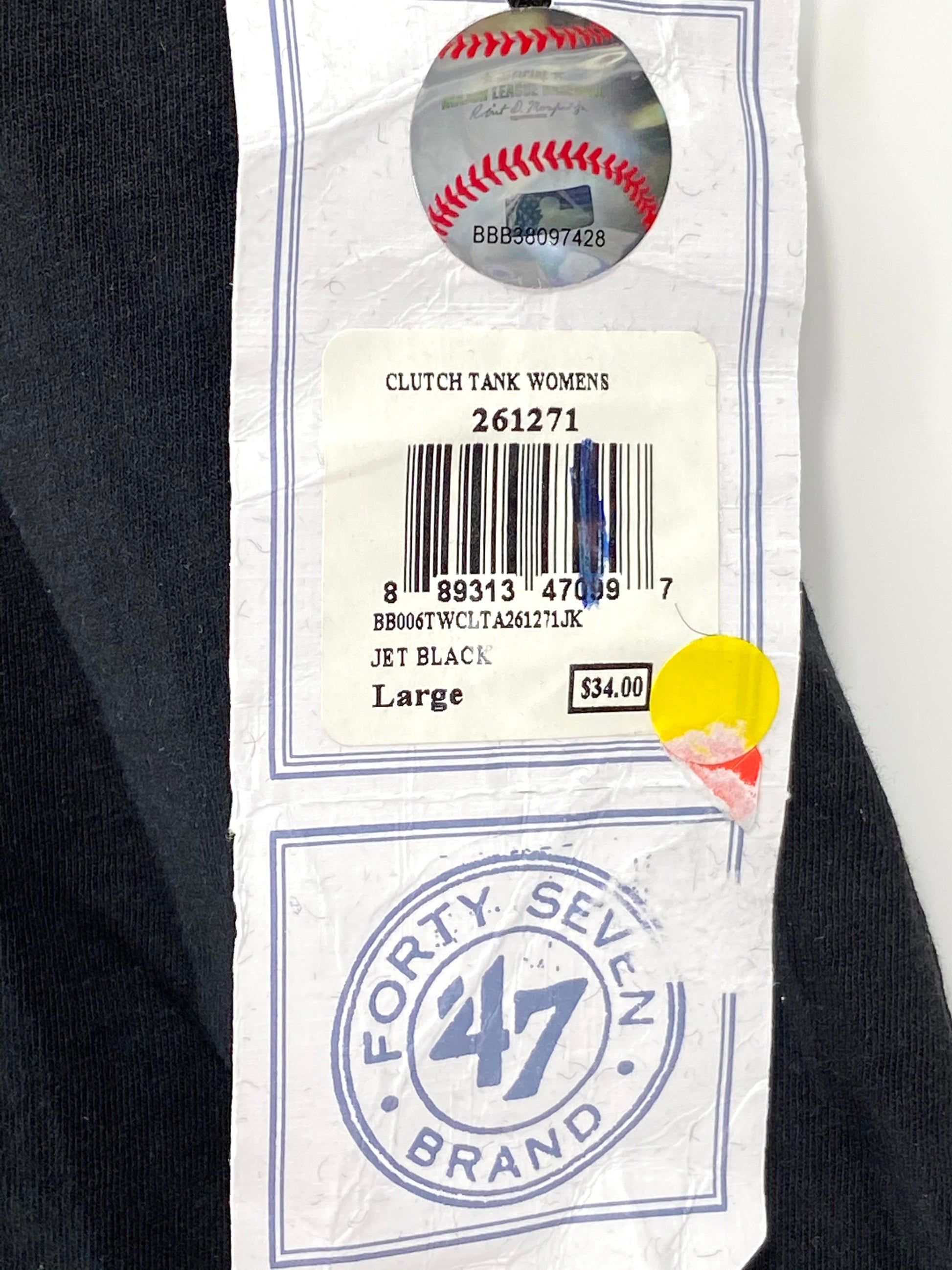 Now here is one sweet tank top, ladies. Brought to you by one of the best in the business -- '47 Brand -- this jet black clutch tank top (with reflective logo) will make you the hit of the game. It's 100% cotton, made in Peru, and is complete with original tags. You'll have plenty of ventilation on one of those hot summer nights in the windy city.