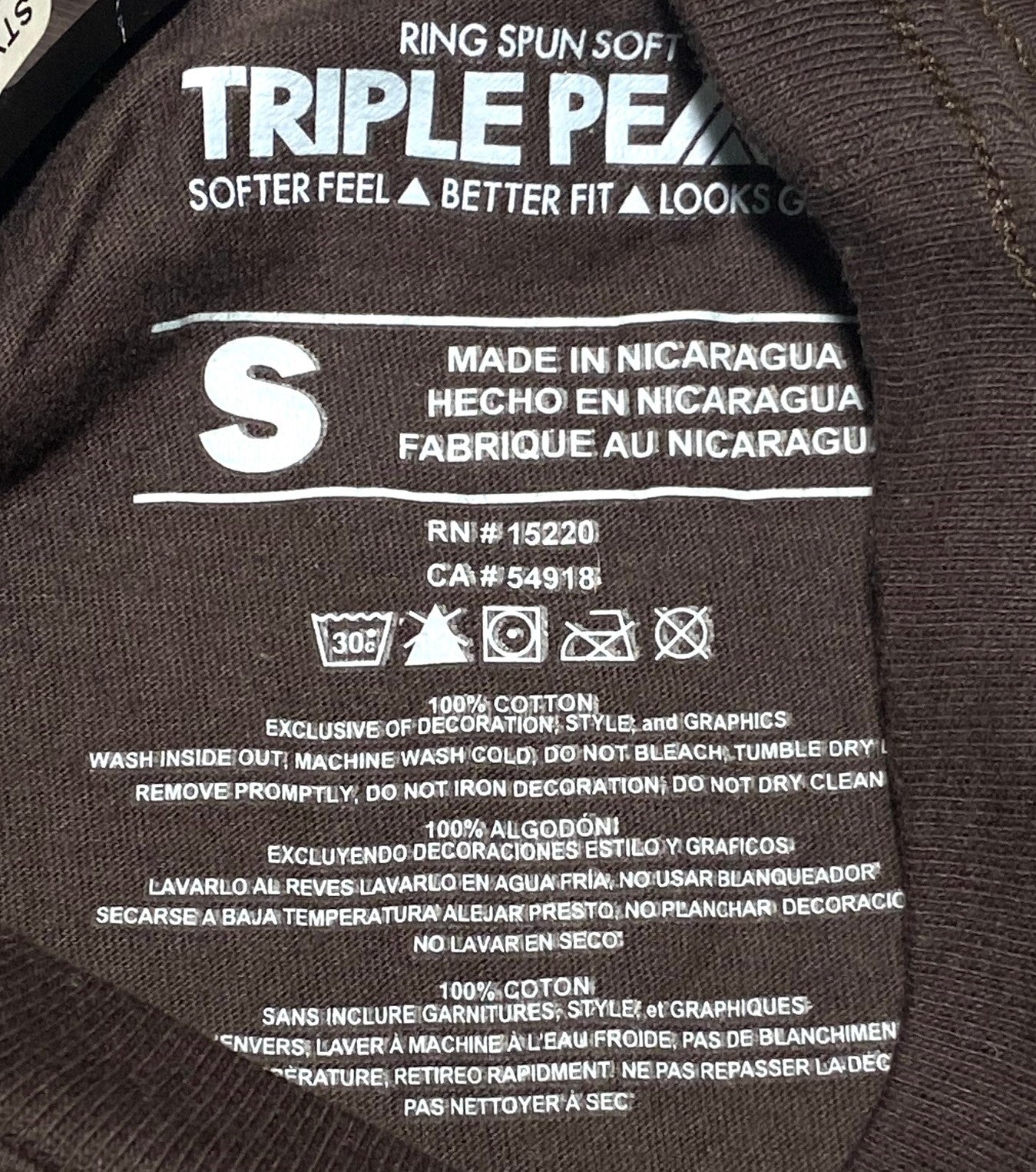 Care instructions: Wash inside out -- Machine wash cold -- Do not bleach -- Tumble dry low -- Remove promptly -- Do not iron decoration -- Do not dry clean --