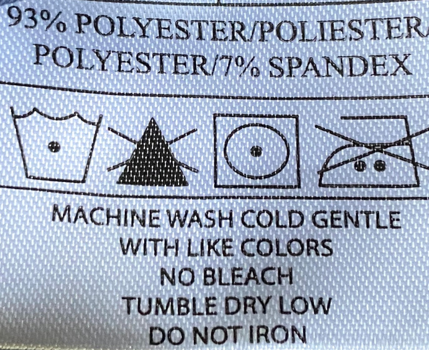 Care instructions: Machine wash cold gentle with like colors -- No bleach -- Tumble dry low -- Do not iron --