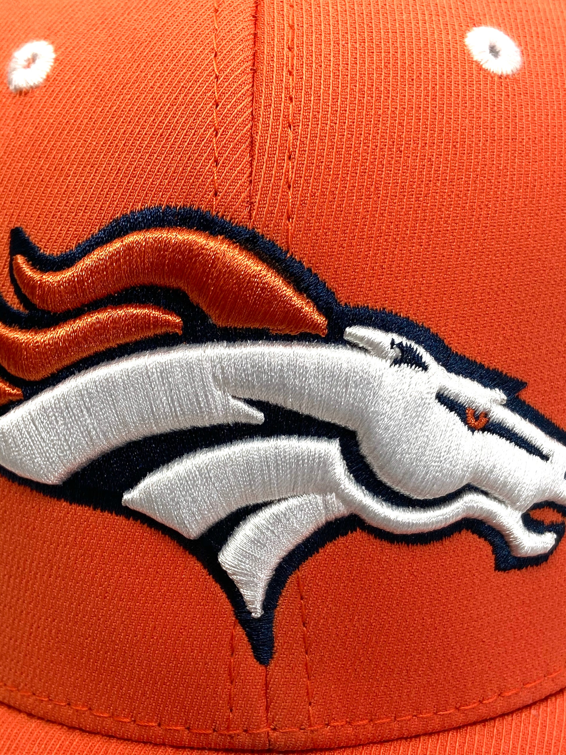 Each team colored Denver Broncos cap features an exceptional 3D logo and is 97% polyester plus 3% Spandex (which provides that great stretch fit) and was made in Vietnam. It is complete with hanging hook and all informational stickers, You'll get a lot of miles on this cap (since you won't want to take it off). Adult OSFA; licensed.
