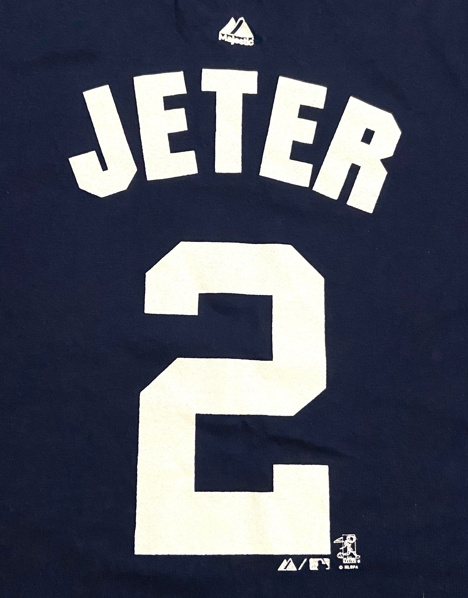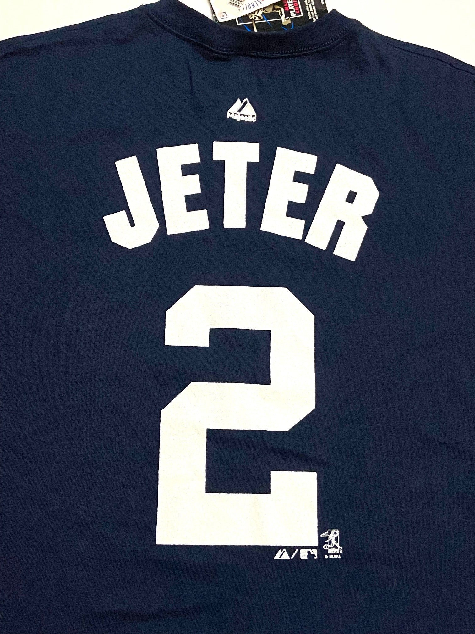 How about this NOS (New Old Stock) w/tags Derek Jeter t-shirt, MLB fan? This popular 2-sided print is still one of our more popular T-shirts, and that popularity doesn't appear to be ending any time soon.