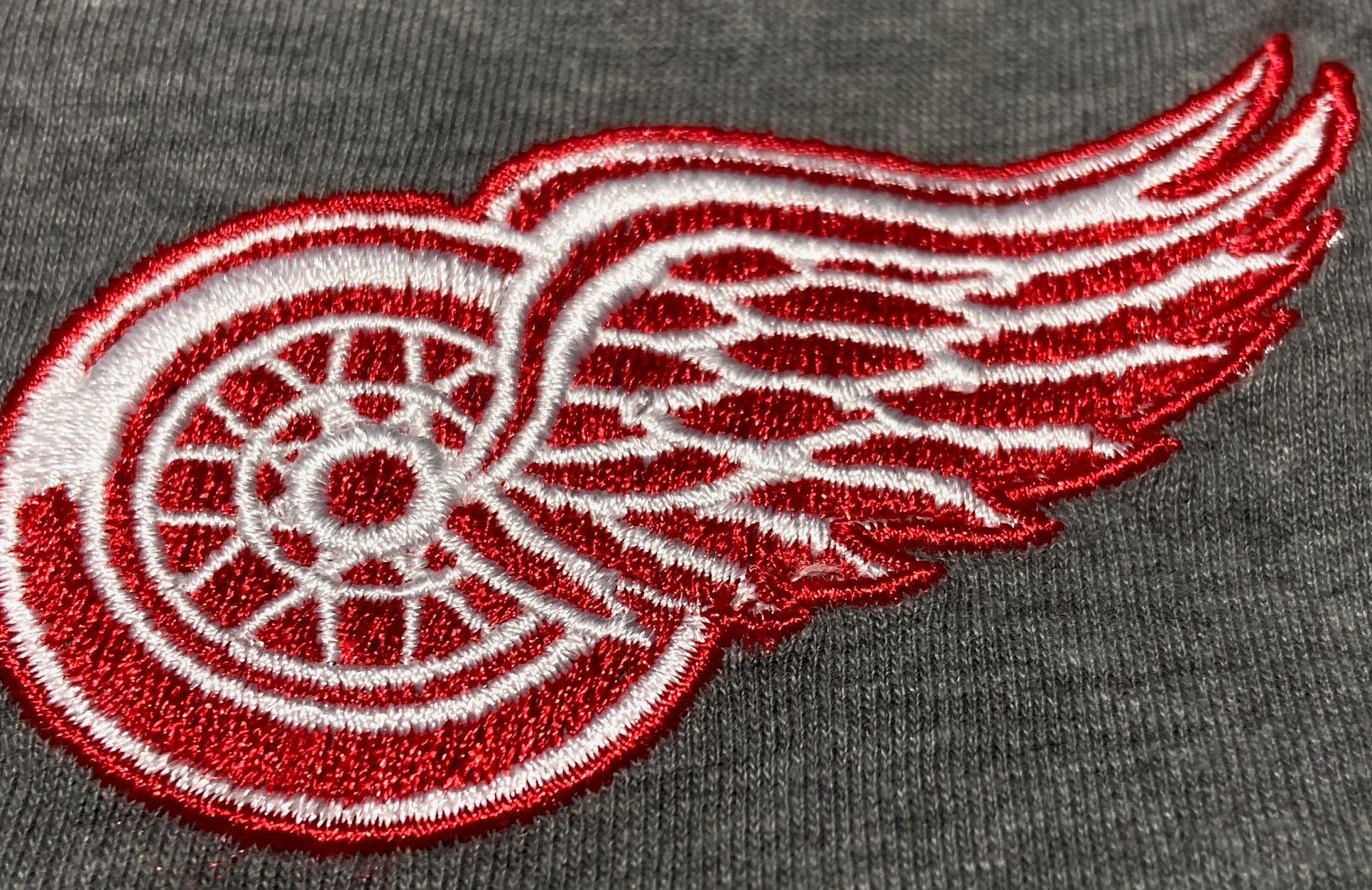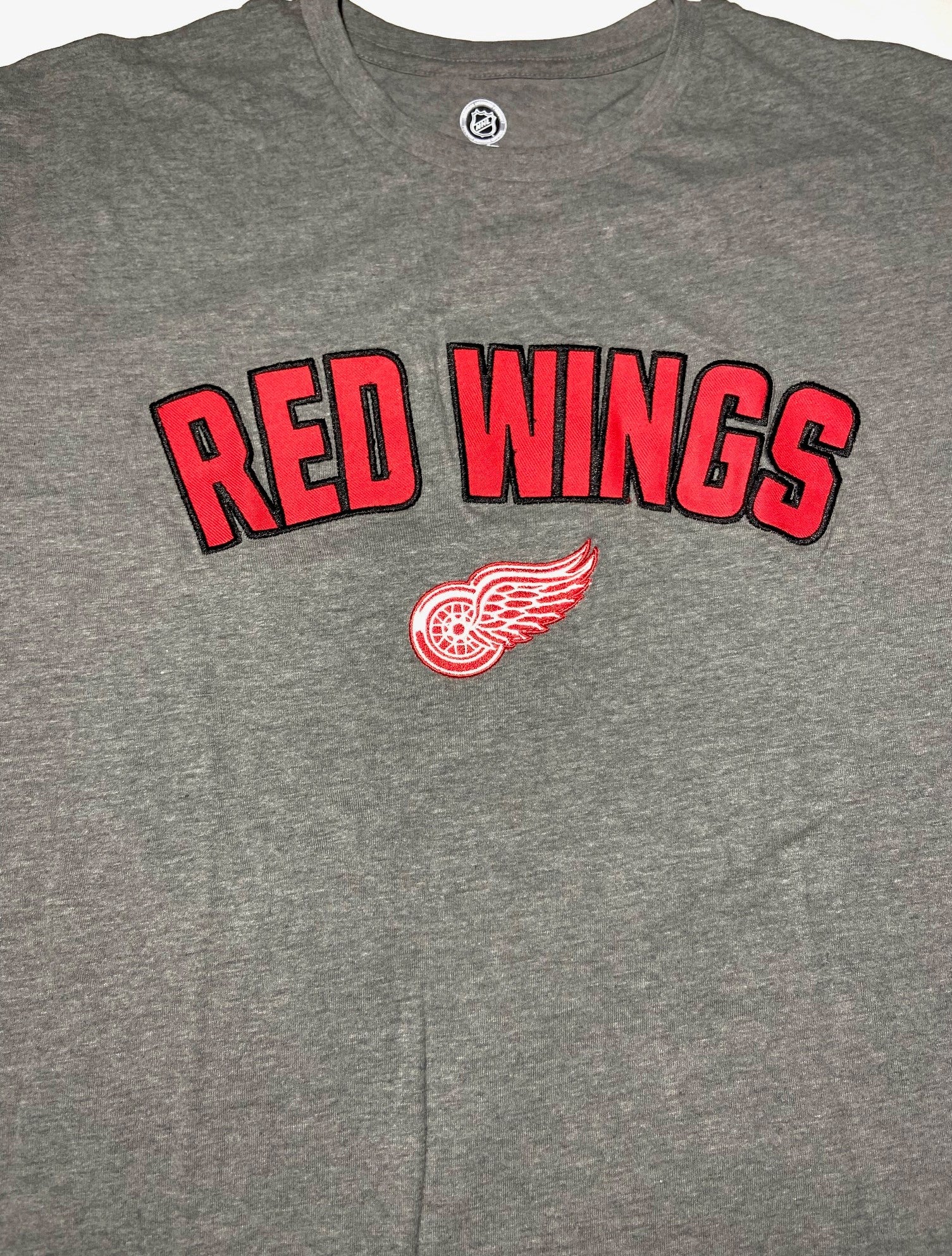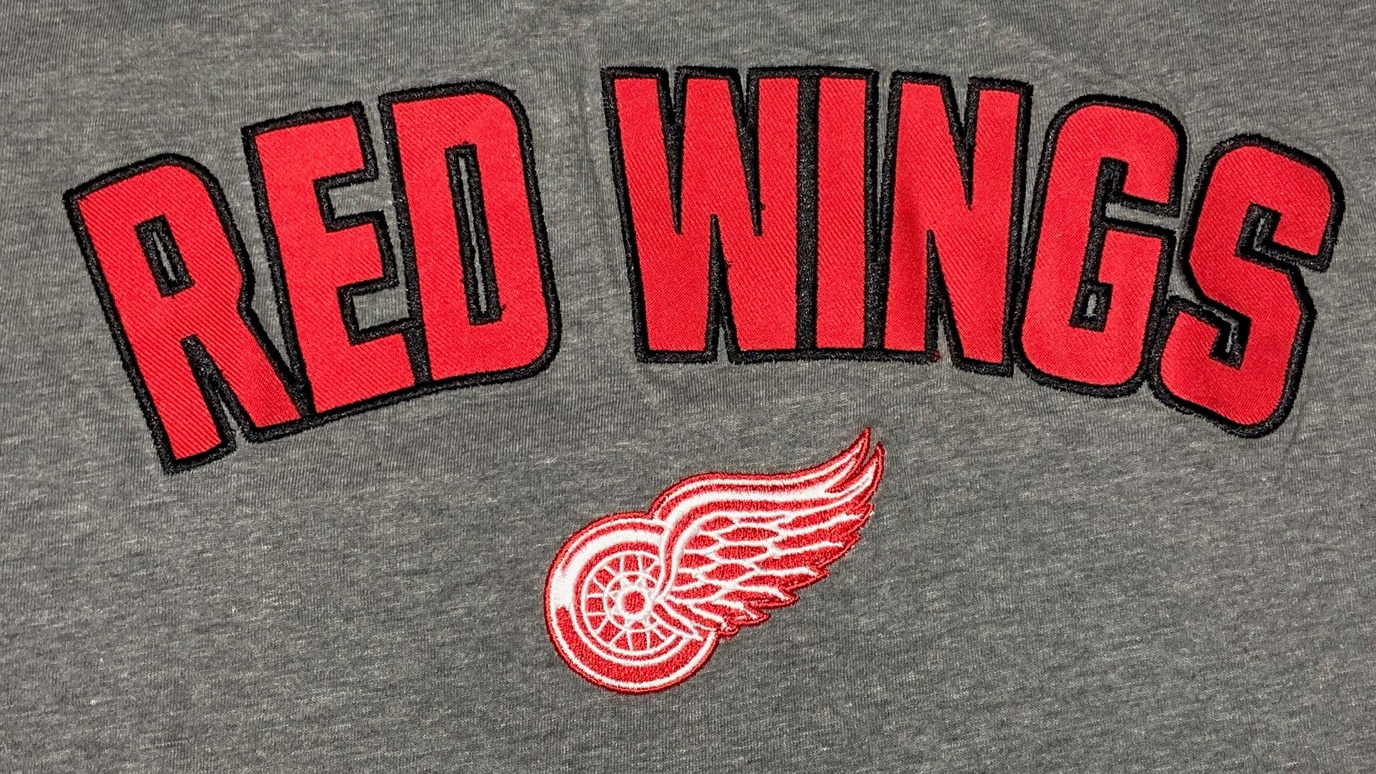 Here's an awesome richly embroidered Red Wings T-shirt that jumps out at you with the large block "RED WINGS" as well as the team logo. This is not your grandfather's Red Wings T-Shirt, for sure!