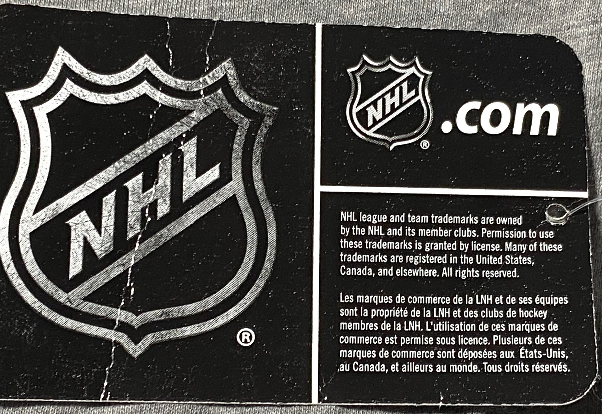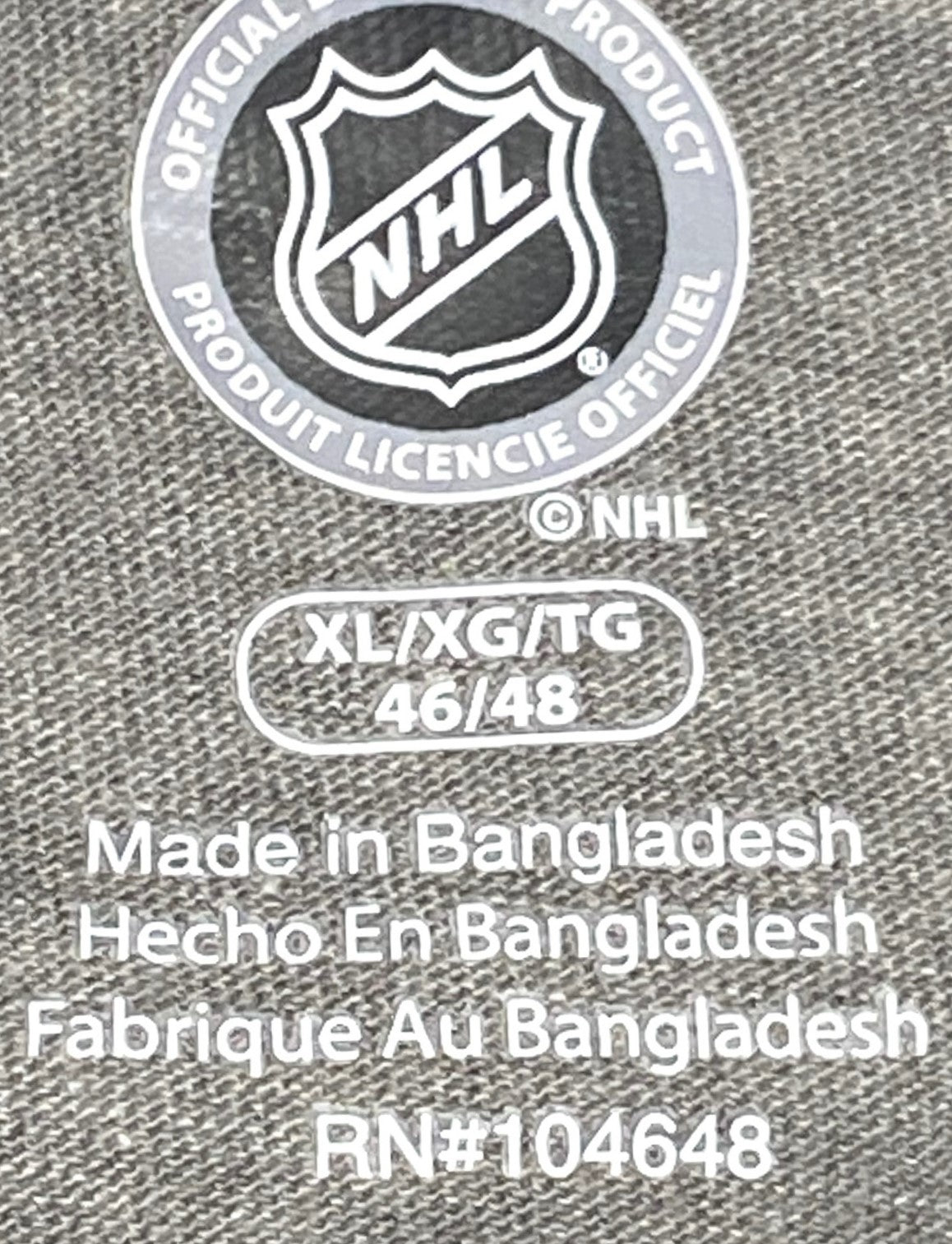 The vitals: It's 85% cotton/15% viscose (aka rayon), the NOS (New Old Stock) T-Shirt is gray, was made in Bangladesh by the NHL, and also has the original tags. Remember to check out the photos! And go for it!
