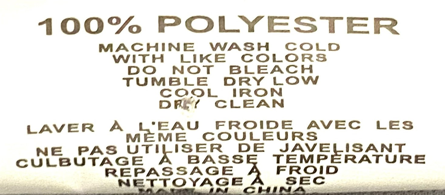 Care instructions: Machine wash cold with like colors -- Do not bleach -- Tumble dry low -- Cool iron -- Dry clean --