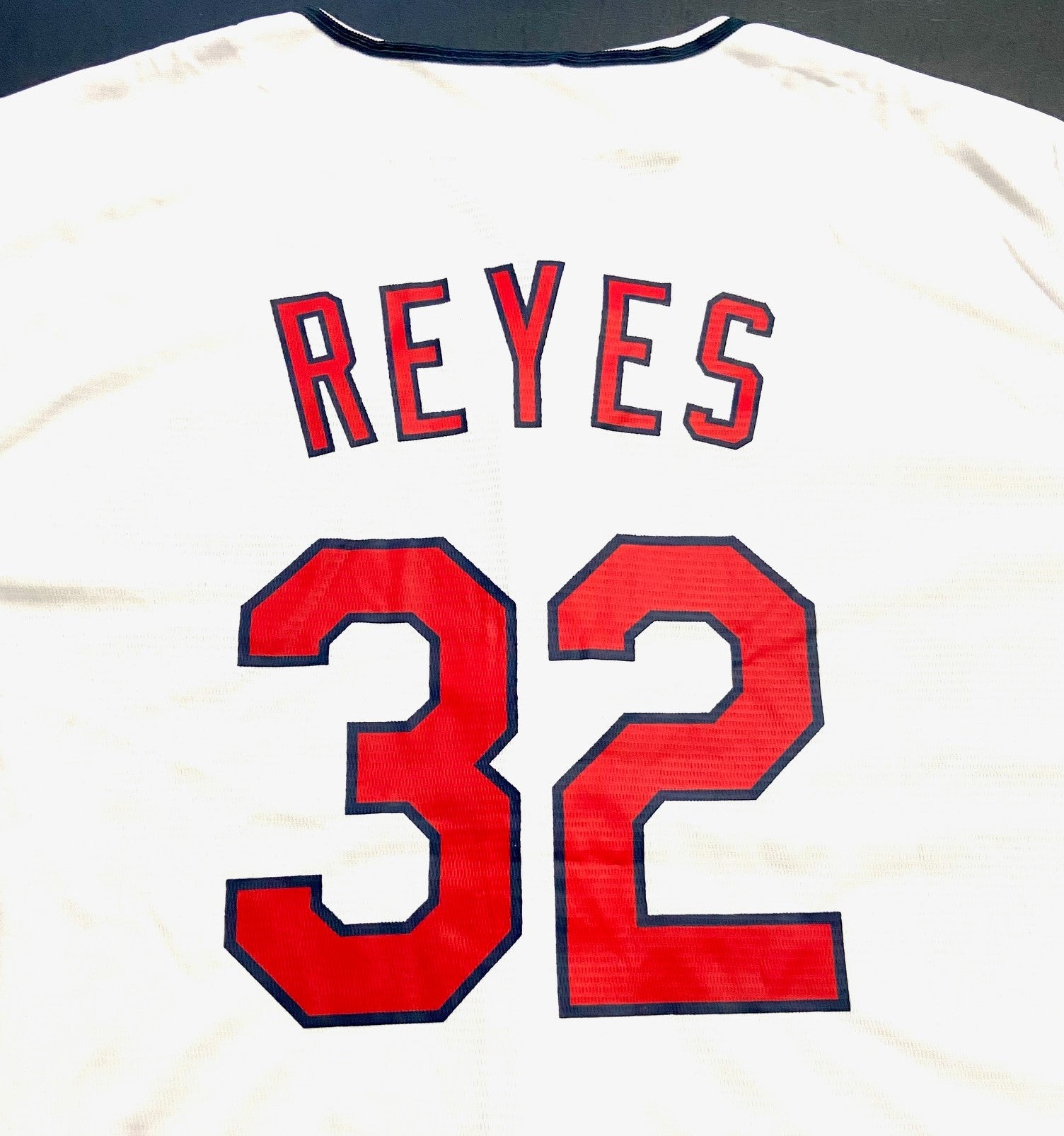 The Cleveland Indians honored Franmil Reyes with a Jersey giveaway to the first 12500 fans on 7-24-2021. It's extra-large, and the quality of this used item is quite good. Reyes was an Indian from July 31, 2019, up to his release on August 6, 2022, so his time with Cleveland was limited (especially when you factor in the way COVID-19 impacted the schedule). Like many players in today's MLB, Reyes can hit the ball a long way -- if he makes contact -- which was a big "if" in his case.