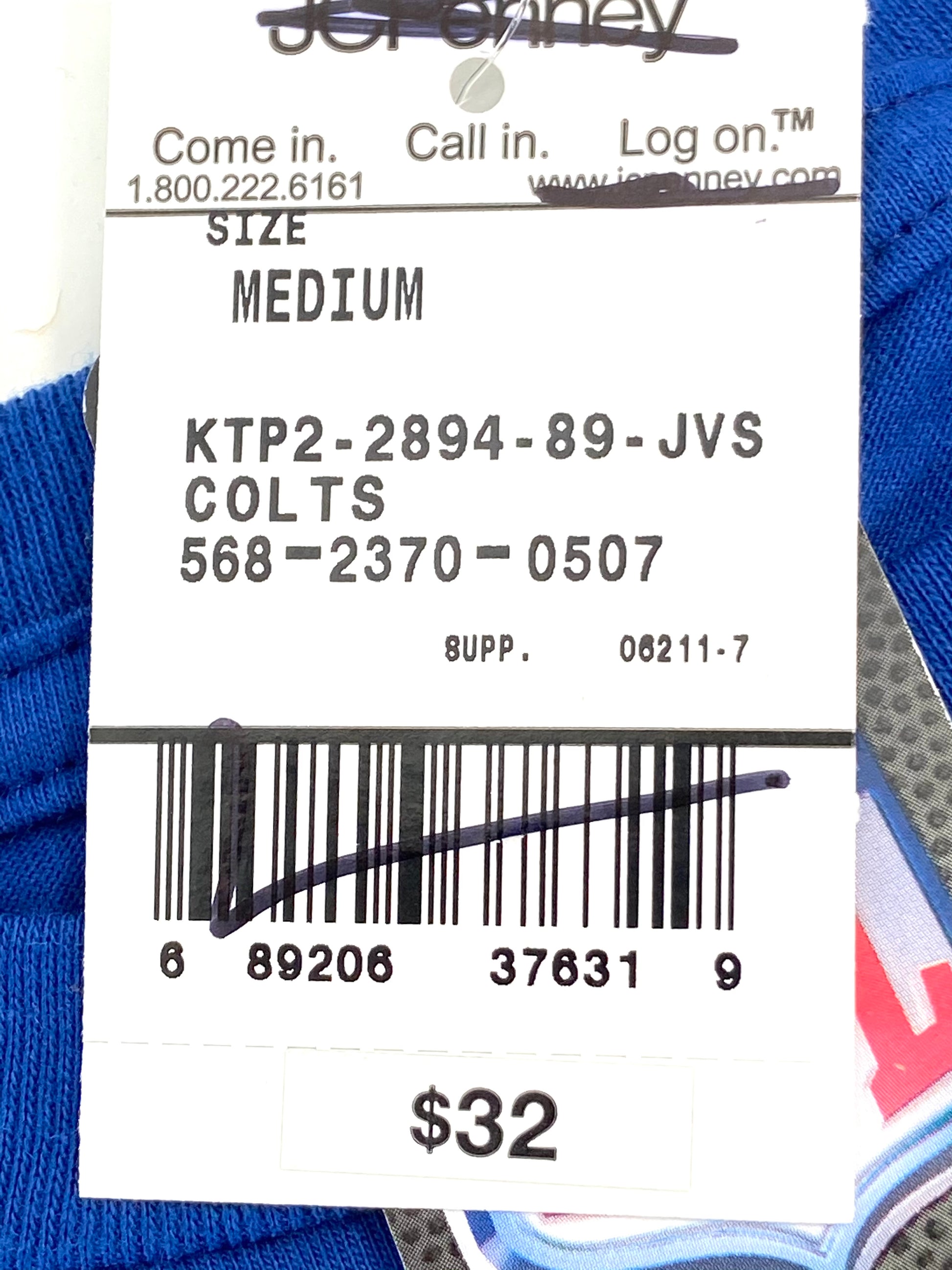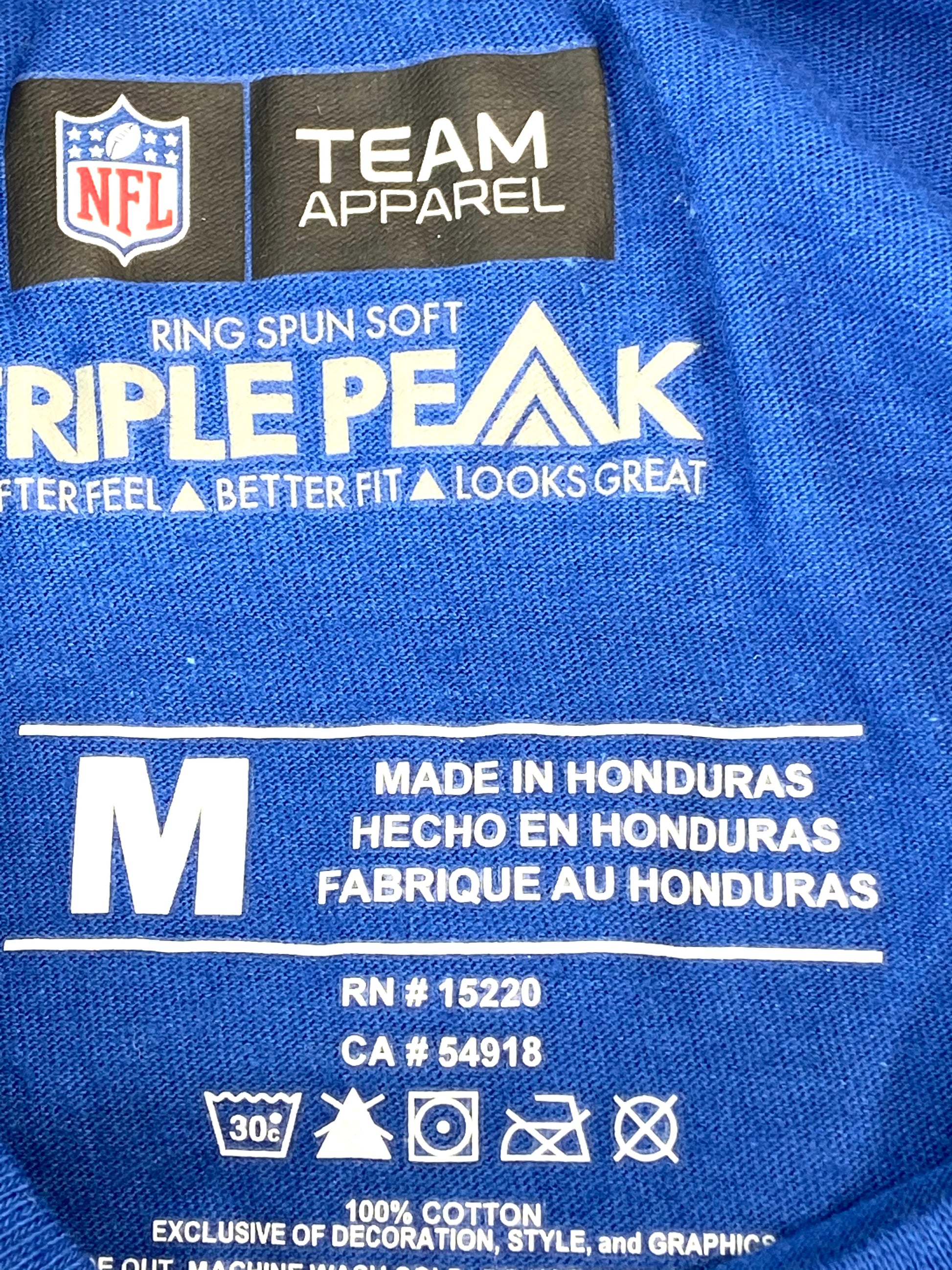 Experience the ultimate Colts fandom with this authentic NOS "faded print" t-shirt, perfect for any dedicated fan wearing size Medium. Featuring the iconic "Colts" script, proudly represent your team while roaming the streets of Indianapolis. Made in Honduras, this 100% cotton shirt comes with its original tags and stickers. With a chest measurement of 19" and a length of 27", it's a perfect fit for any Colts supporter. Get yours today and show your team spirit! Honduras.