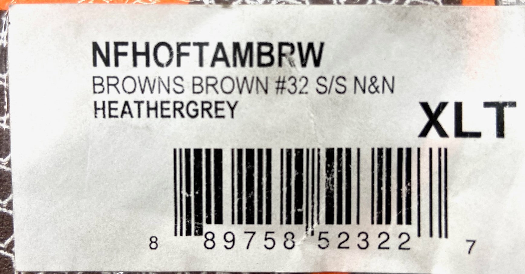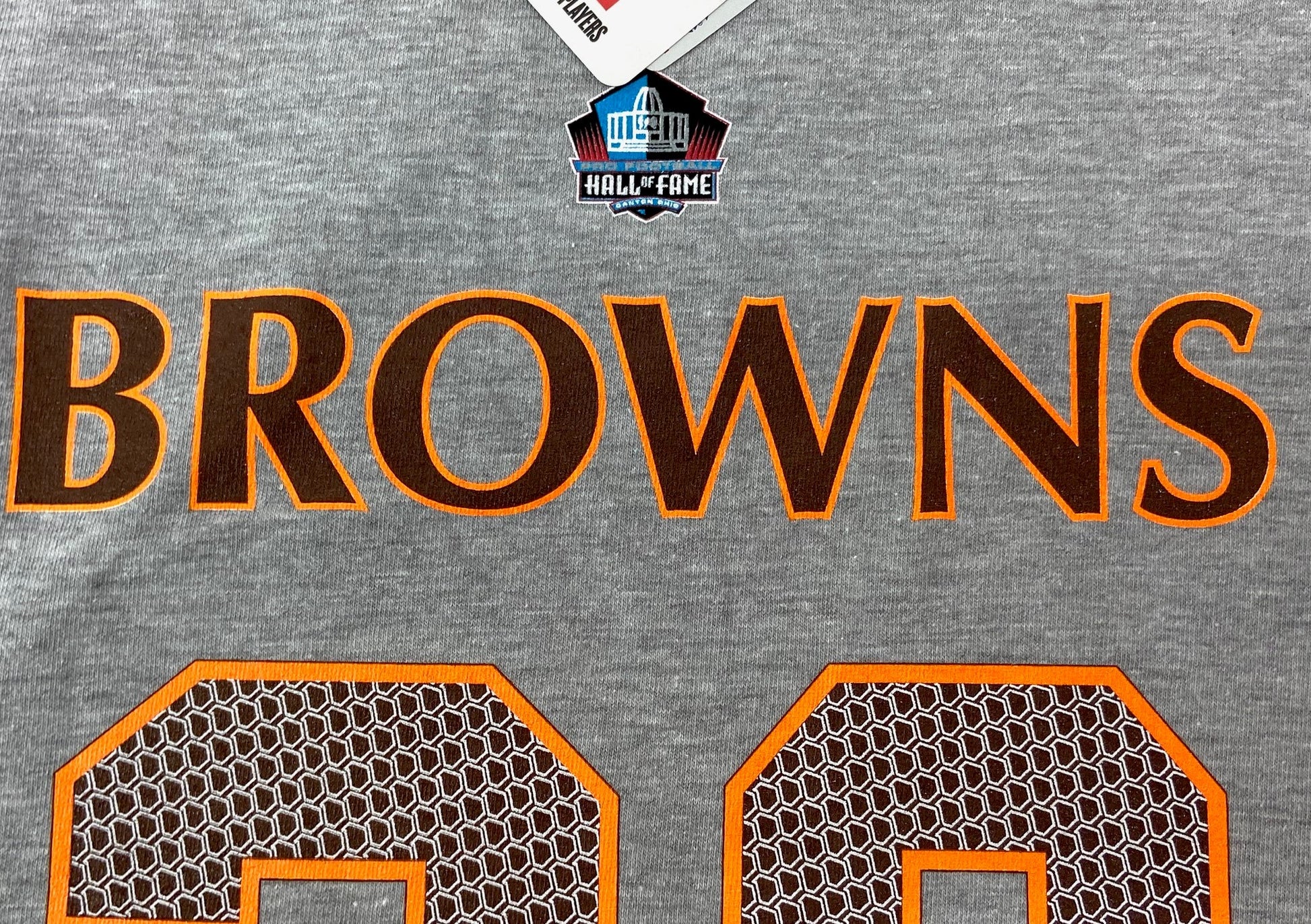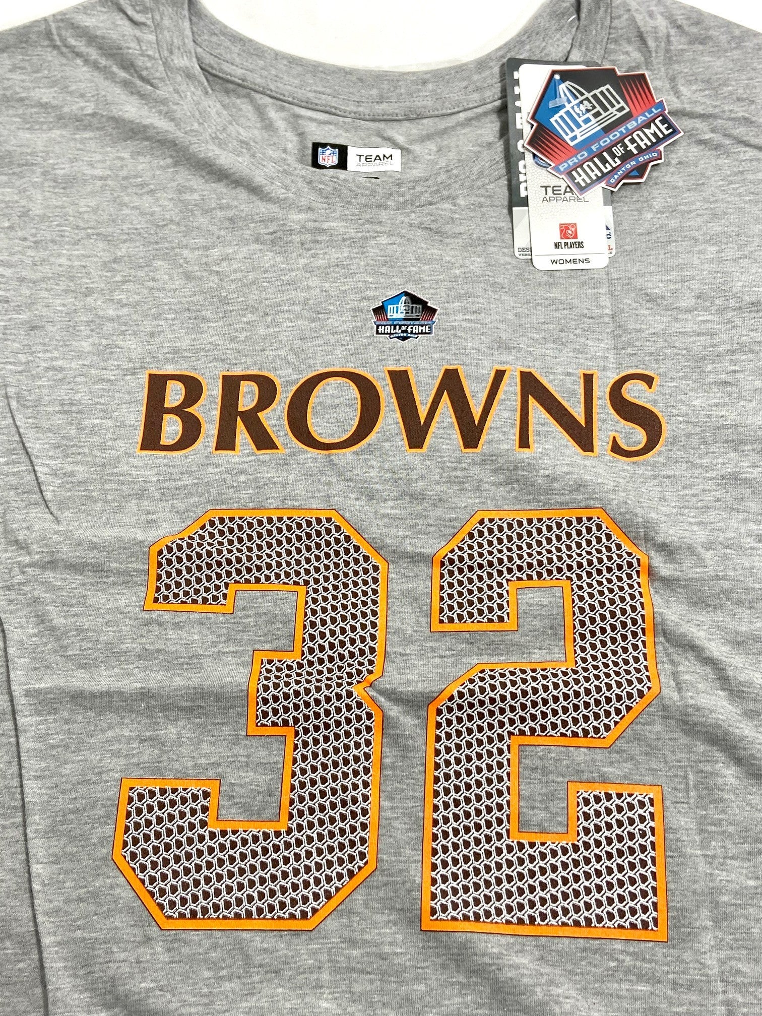 Jim Brown #32 NFL Cleveland Browns Men's and Women's NOS Gray HOF T-Shirt