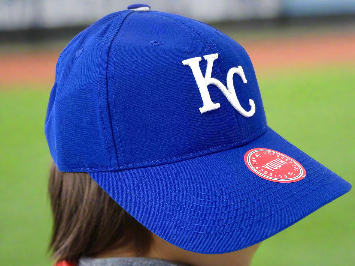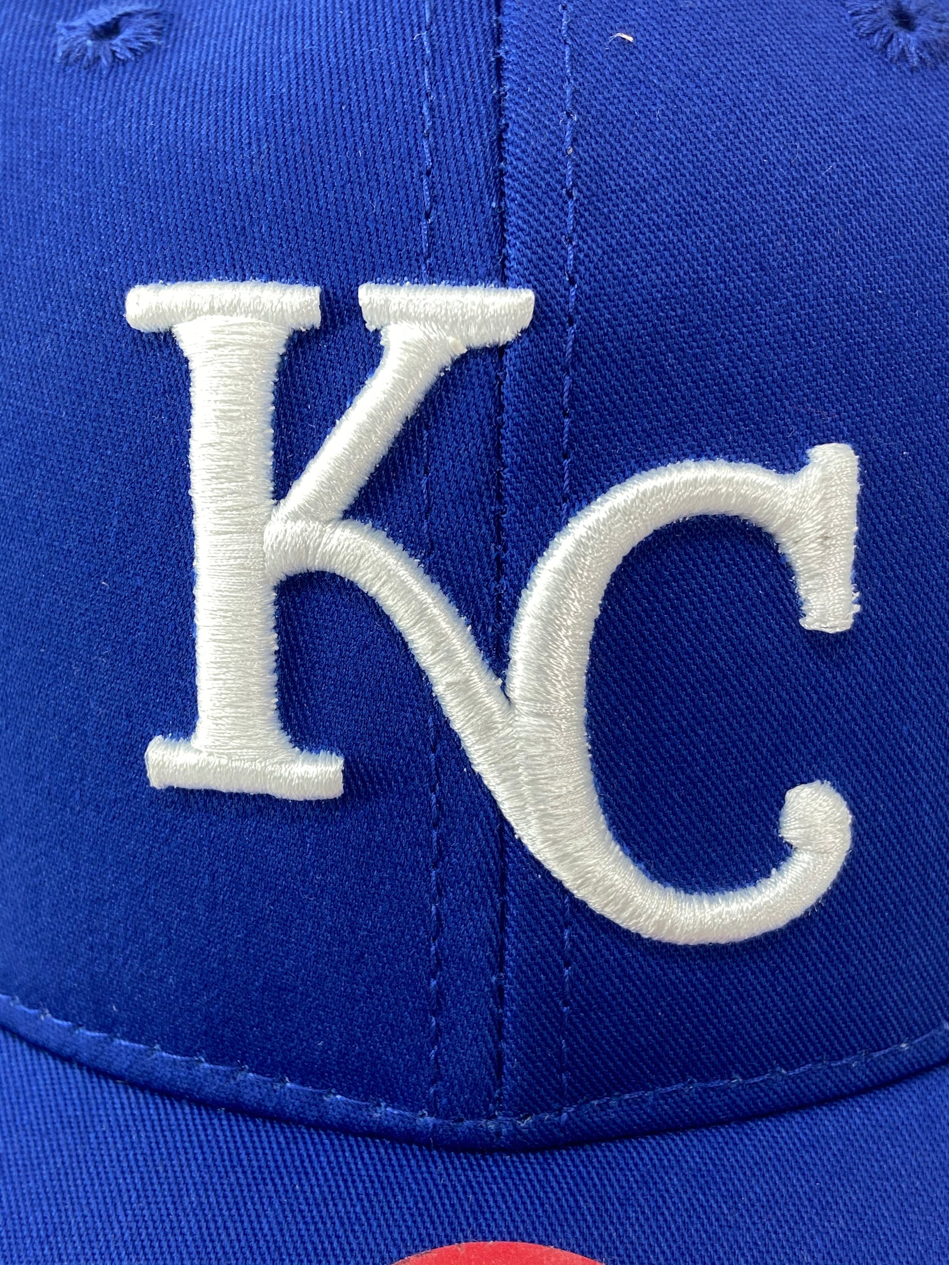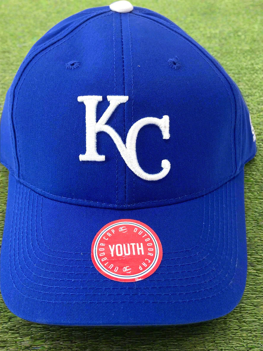 These are the Kansas City Royals MLB-275 youth home replica caps made by Outdoor Cap -- American League version. The only difference between these and the MLB-300 caps is these have a curved bill. The 300s are flat, but it is easy to curve the bill to your taste if so desired. These...not so much. It's pretty difficult to flatten a pre-curved bill (and expect it to stay flattened); just an FYI. Otherwise, the NOS 275s are essentially the same cap as the 300s: Polyester/cotton twill, made in Bangladesh or China, with hook and loop closure and exceptional embroidery. Outdoor Cap decided it was more cost-effective to only make one cap that could go flat or curved rather than gear up for two different bills. Personally, we prefer the curved bills, but then ...who asked us? Since these have been discontinued, we have considerably fewer of these than the 300s...