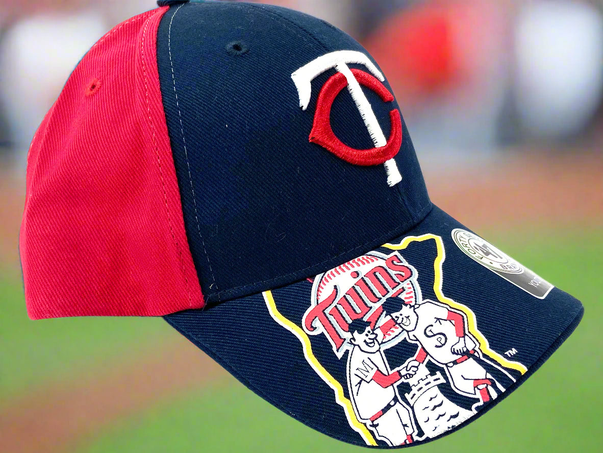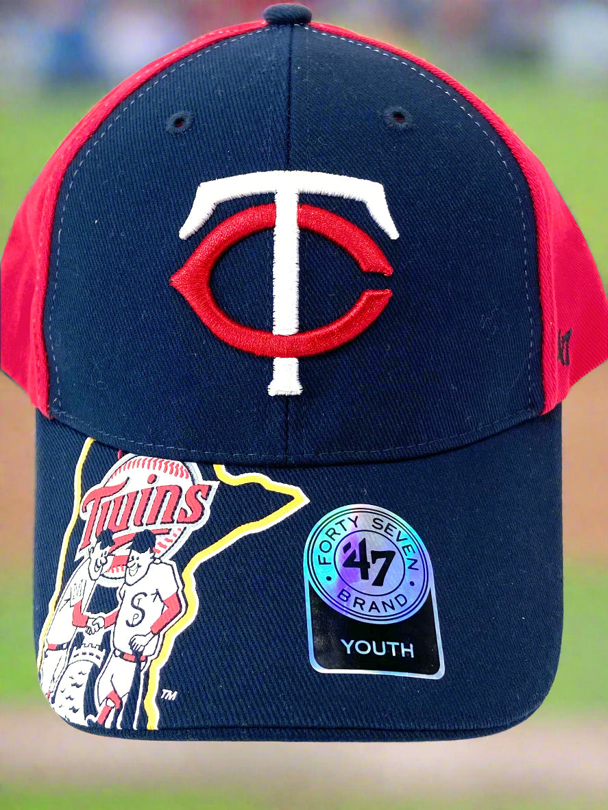 Here's an intriguing effort by '47 Brand (formerly known as Twins Enterprise). It's a structured team color "TC" logo cap with the alternate "Twins" logo on the bill. This baby is 100% cotton with an adjustable hook and loop closure for obtaining that "perfect" fit, and features a curved bill. Unfortunately, at the moment we can offer this cap in youth size only!