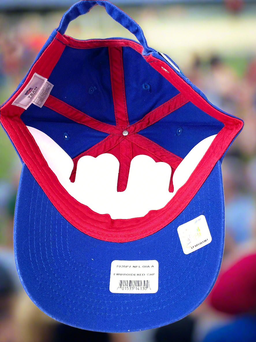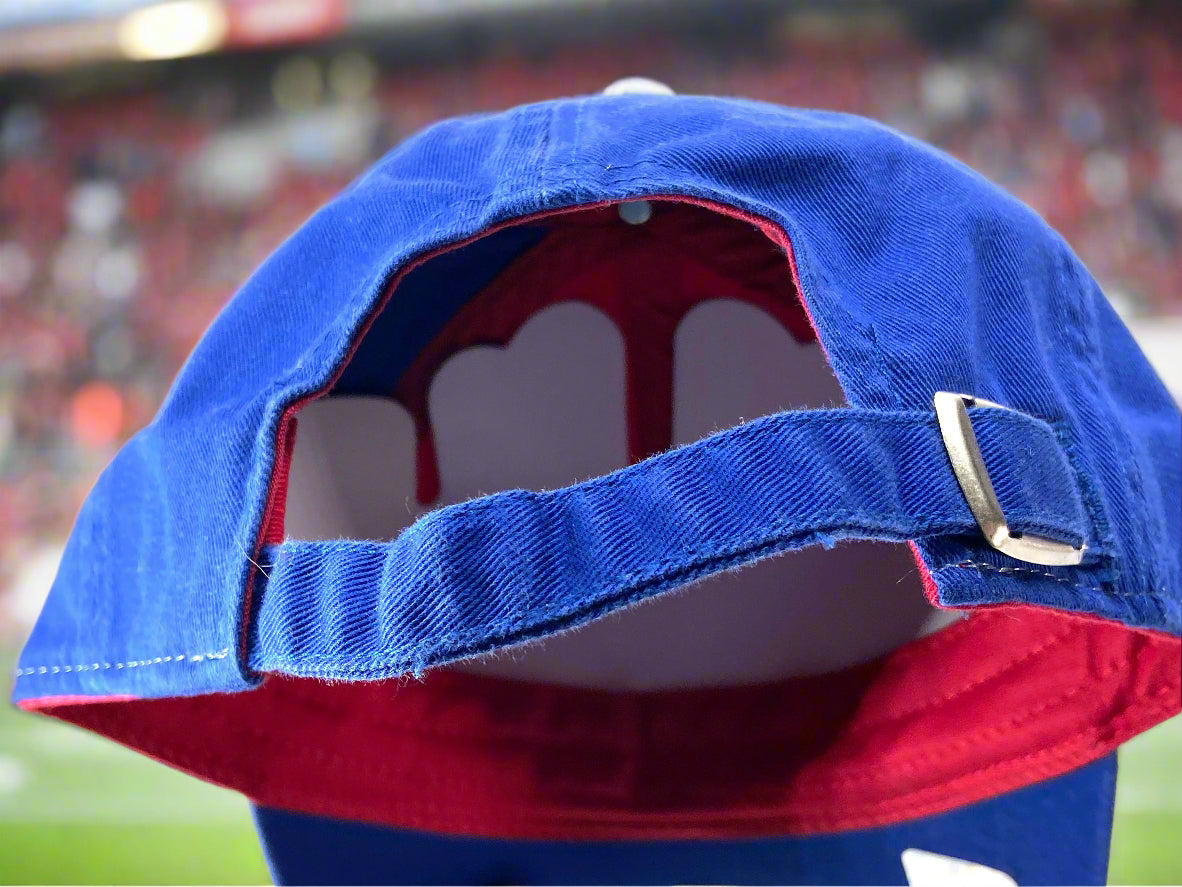 Here's a nifty good-looking hat with a vivid color combo that you don't see everyday...and we love it! This NOS (New Old Stock) 100% cotton unstructured job is adult OSFA and looks just awesome. Check out the photos and see if you agree. The perfect gift for both males and females alike! Let's reiterate the highlights: