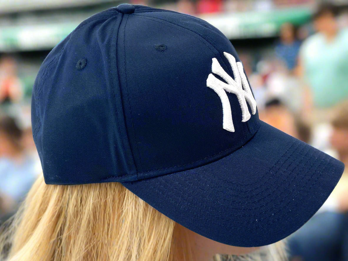 These are the NY Yankees MLB-275 replica caps made by Outdoor Cap -- American League. The only difference between these and the MLB-300 caps is these have a curved bill. The 300s are flat, but it is easy to curve the bill to your taste if so desired. These...not so much. It's pretty difficult to flatten a pre-curved bill (and expect it to stay flattened); just an FYI. Otherwise, the NOS 275s are essentially the same cap as the 300s: Polyester/cotton twill, made in Bangladesh or China, with hook and loop closure and exceptional embroidery. Outdoor Cap decided it was more cost-effective to only make one cap that could go flat or curved rather than gear up for two different bills. Personally, we prefer the curved bills, but then ...who asked us? Since these have been discontinued, we have considerably fewer of these than the 300s...