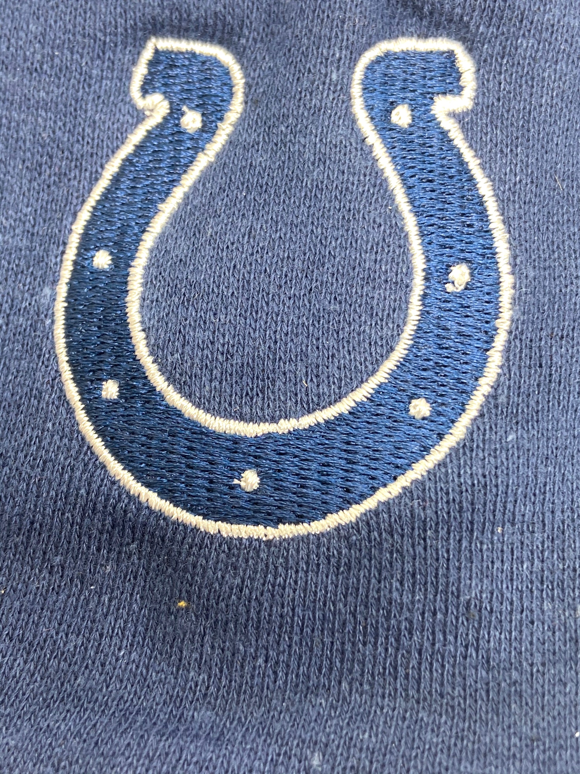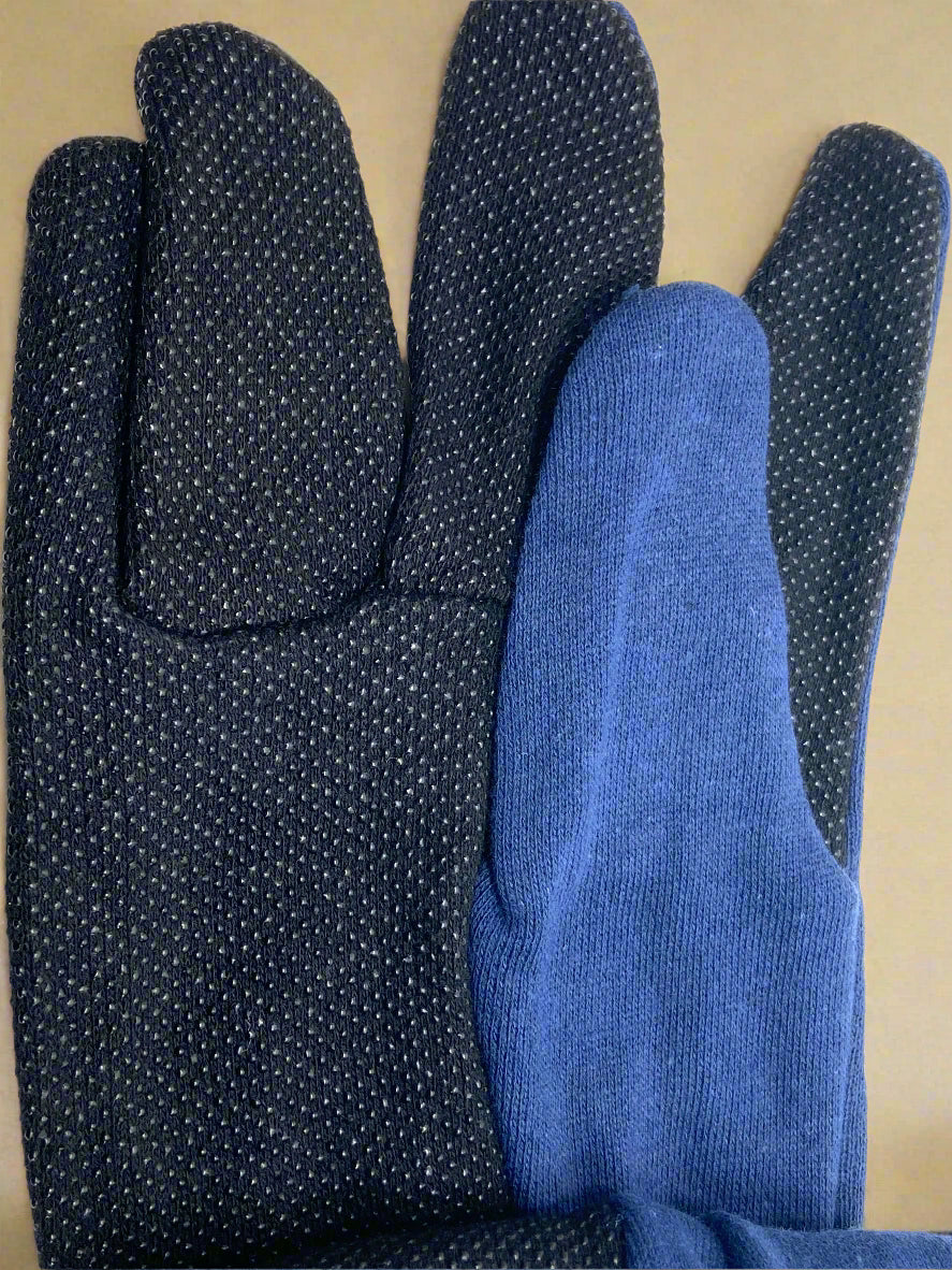 How does a two-tone dotted (no-slip, sure grip) logo utility glove for your favorite team (the Colts) sound? They are OSFA and will give you plenty of service before they cry "Uncle!" These guys are 25% Polyester/ 45%Cotton/ 30% PVC (grips).
