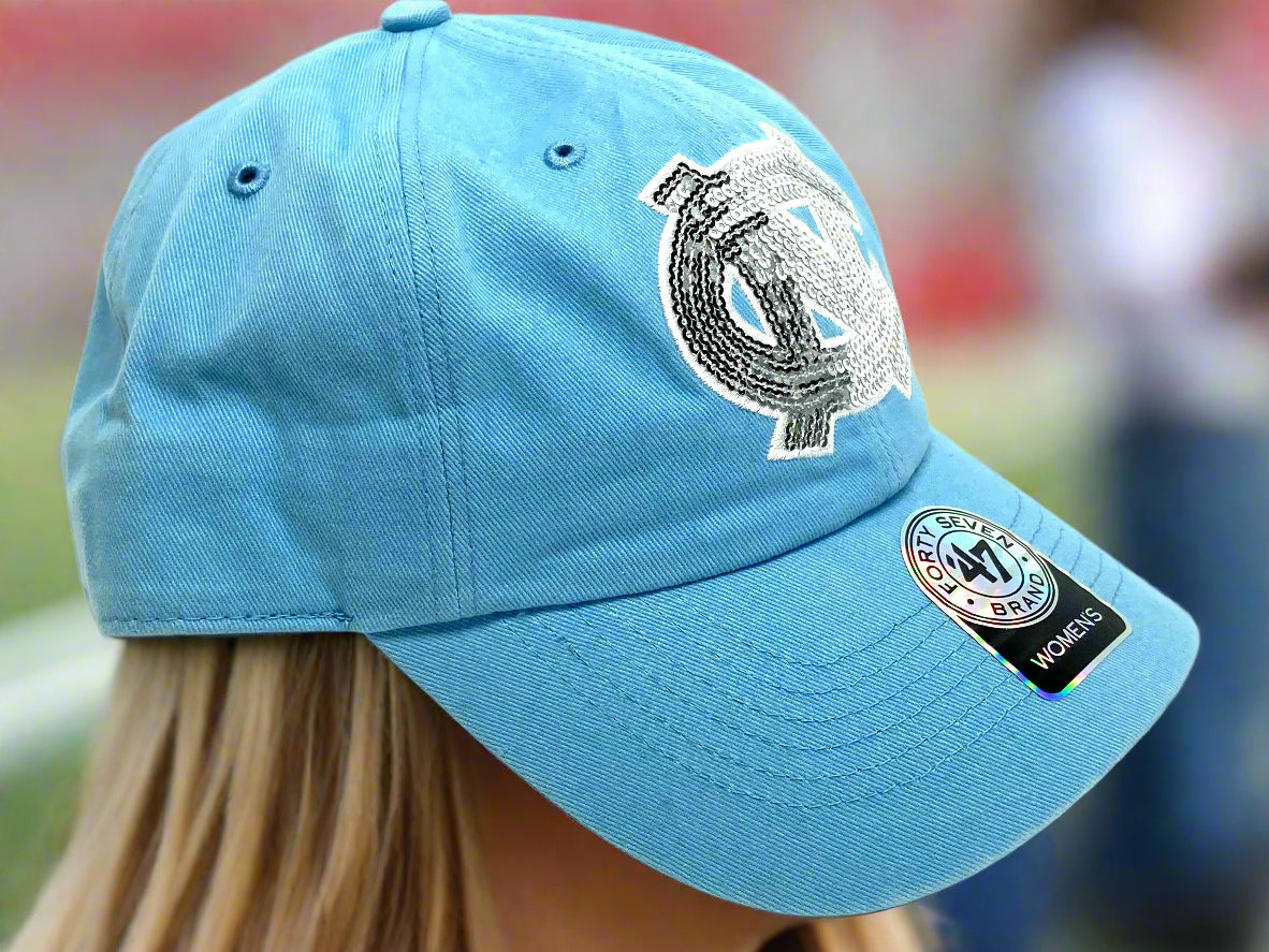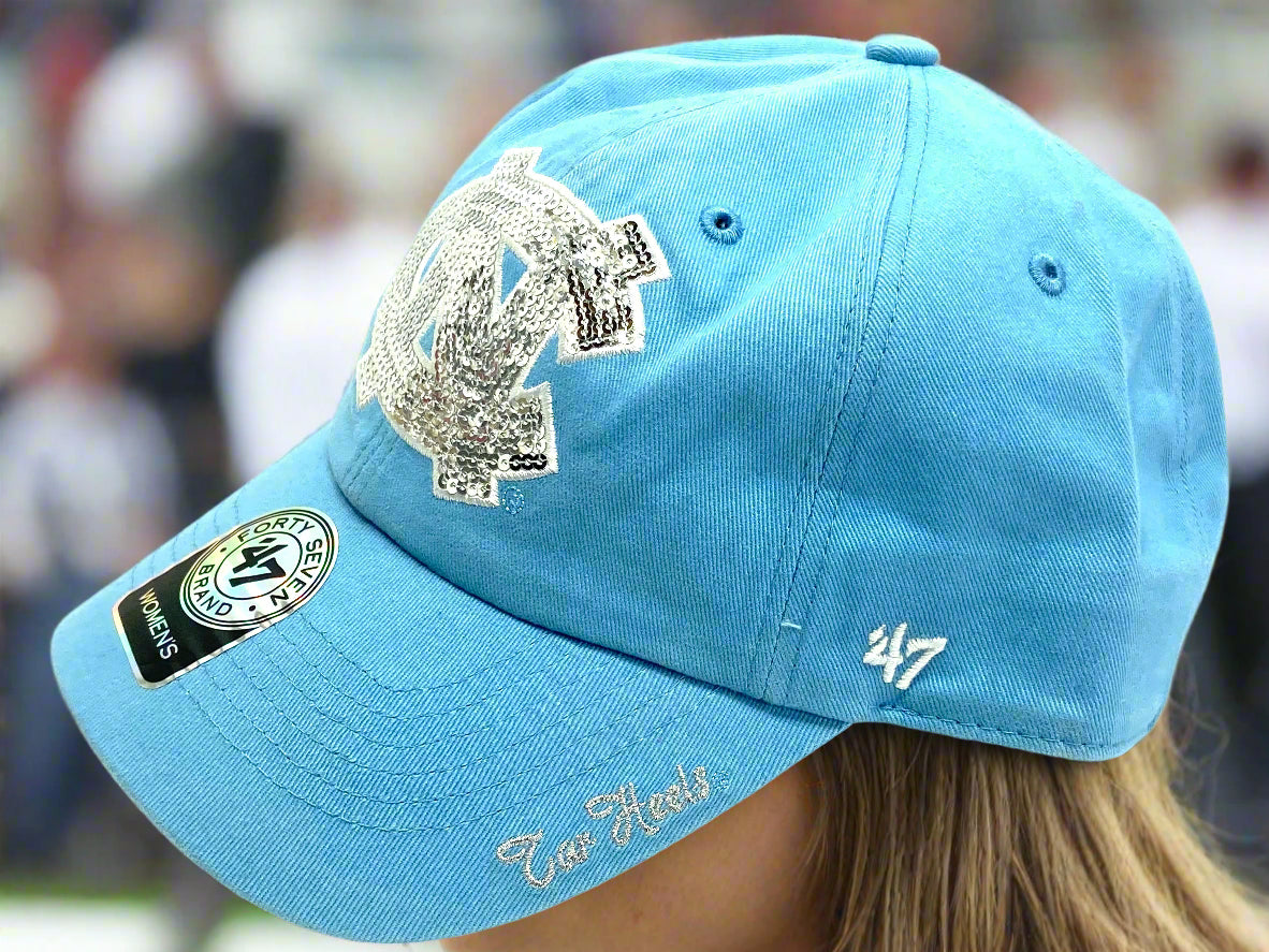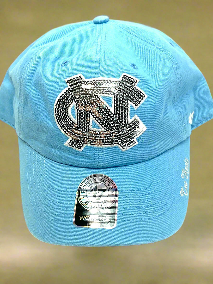 Okay ladies, here is the Tarheel hat you've been looking for. From '47 Brand, this short-billed 100% cotton sparkle NOS (New Old Stock) embroidered design is a popular choice on game day. With an adjustable belt strap, we're certain you'll love this! Check out the photos and try not to get too excited, because -- no question -- it is sweet! China.