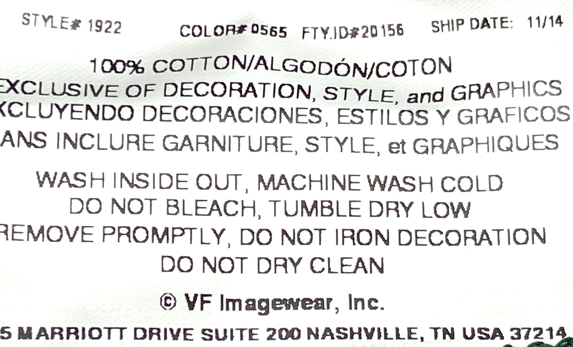 Care instructions: Machine wash cold with similar colors -- Do not bleach -- Line dry -- Do not iron decoration -- Do not dry clean --