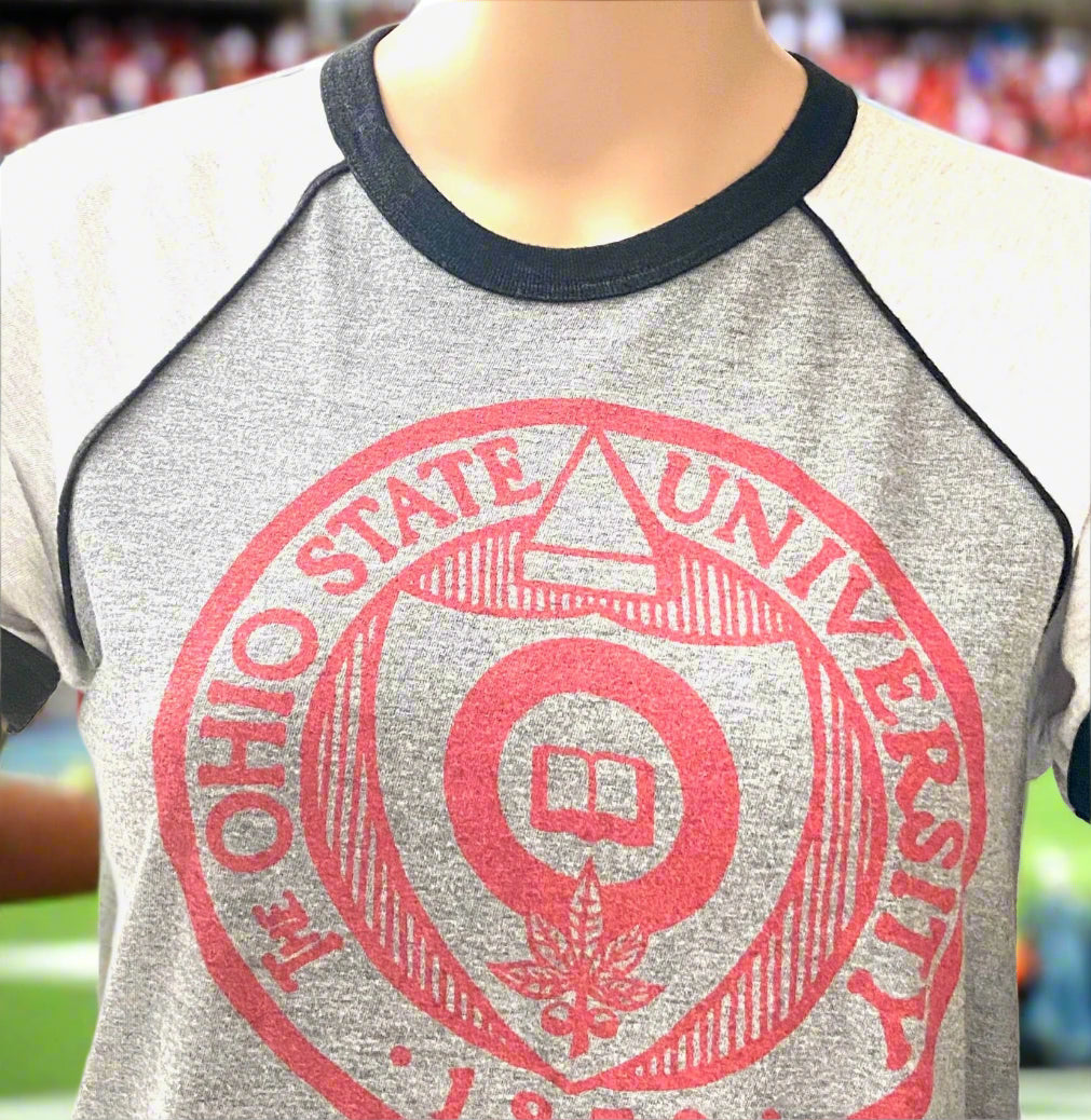 Here's a really cute Ladies XS tee of retro design that is in excellent shape; we still see many of these in Columbus in the early fall.