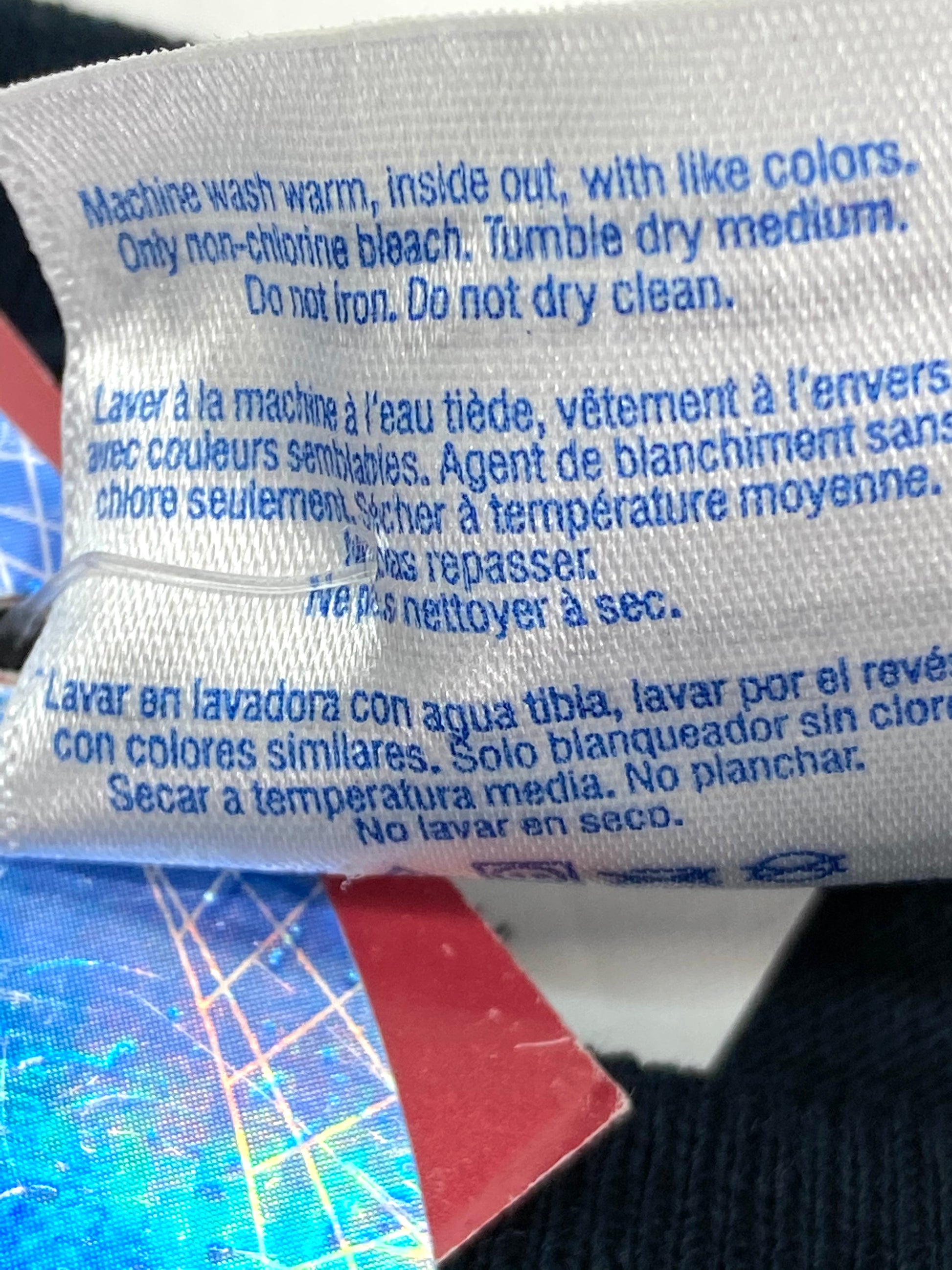 Care instructions: Machine wash warm, inside-out, with like colors -- Only non-chlorine bleach -- Tumble dry medium -- Do not iron -- Do not dry clean --