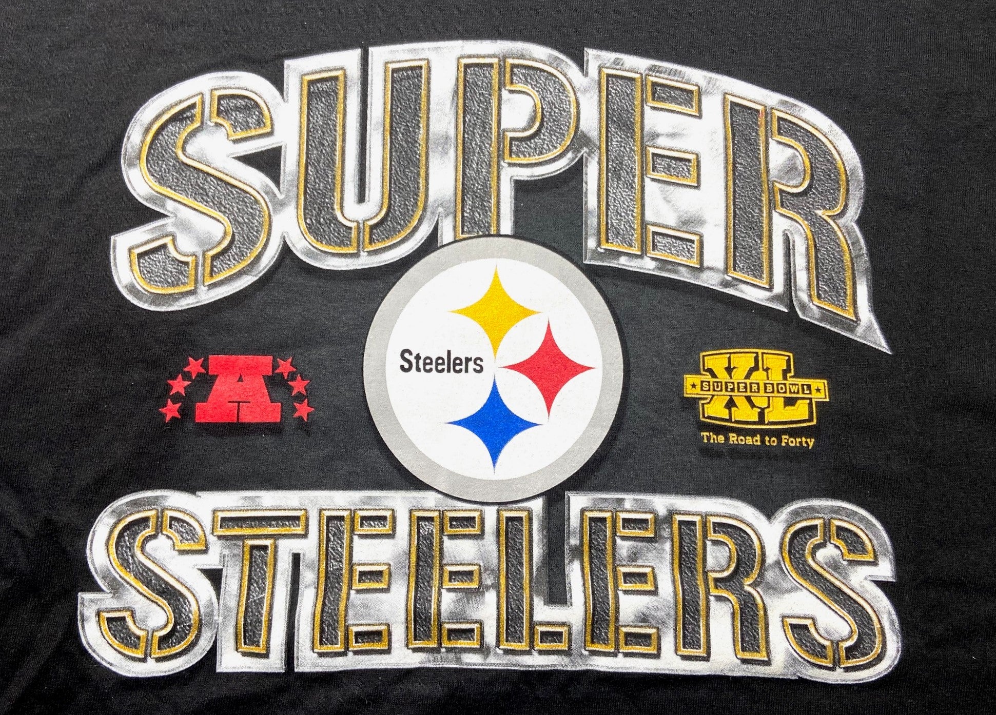 Pittsburgh Steelers NFL Super Bowl XL Adult Large "Super Steelers" Black T-Shirt