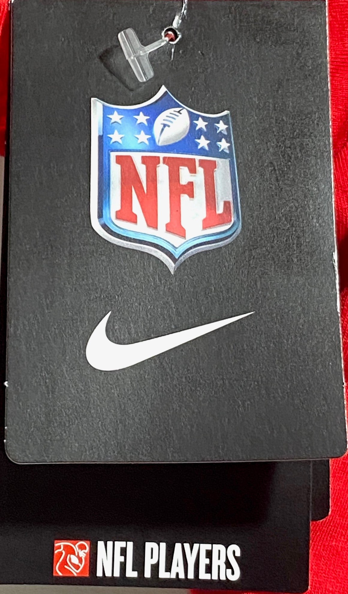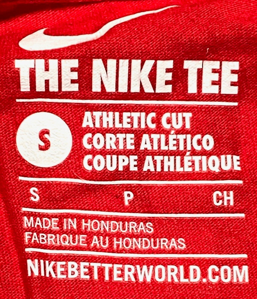 The vitals: It's 100% cotton, the T-Shirt is red, adult small, was made in Honduras by Nike, and also has the original tags. Remember to check out the photos! And then go for it!