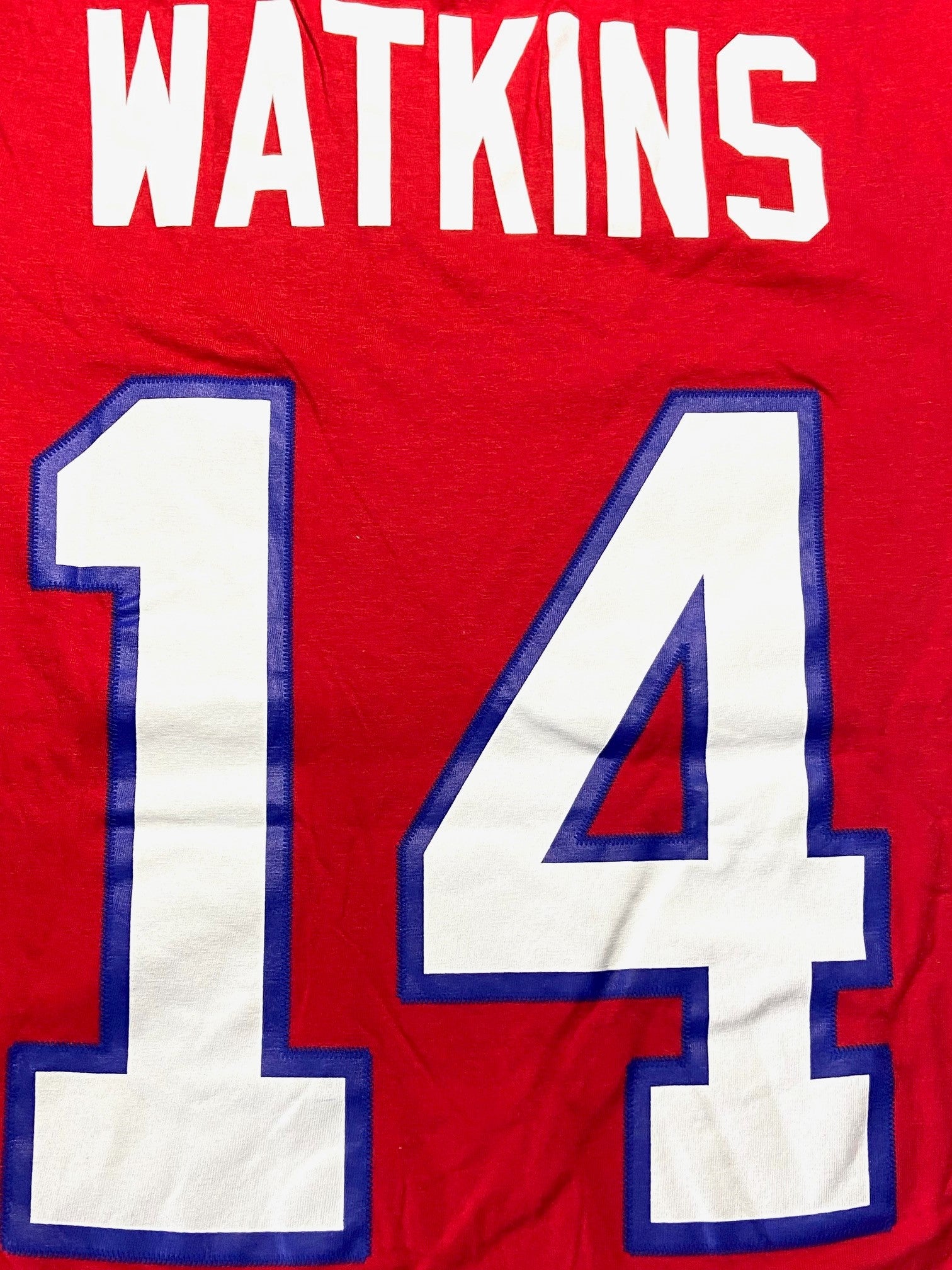Sammy Watkins spent the first 3 years of his career in Buffalo, where he quickly established himself as a premier NFL receiver. His jersey T-shirt with Buffalo is pretty sweet: printed on both sides of the shirt; quality good enough that the print actually looks like real stitching on the numbers!