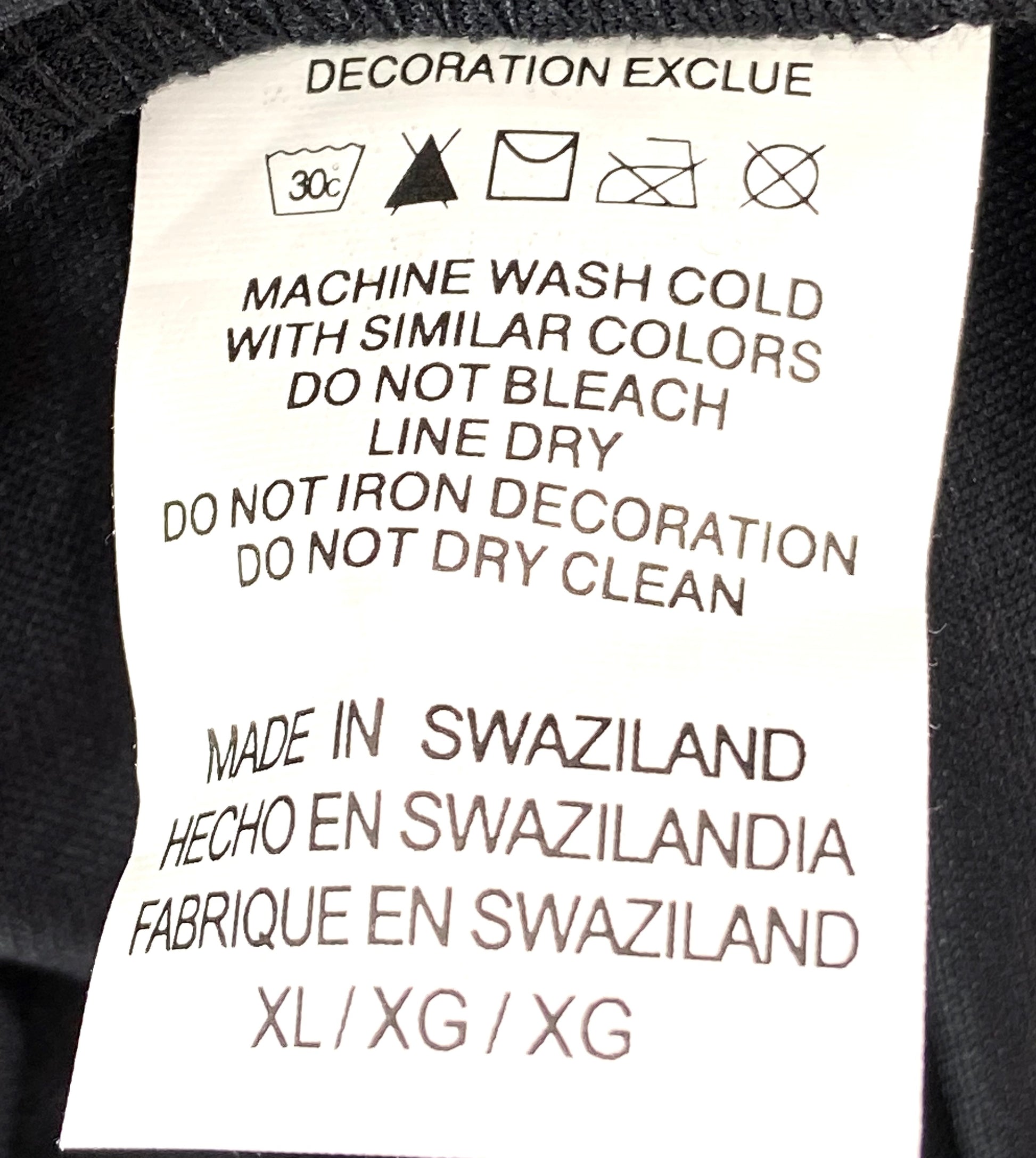 Care instructions: Machine wash cold with similar colors -- Do not bleach -- Line dry -- Do not iron decoration -- Do not dry clean --