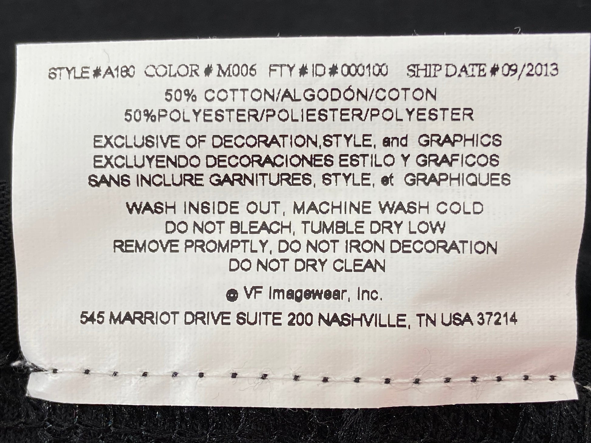 Care instructions: Wash inside-out -- Machine wash cold -- Do not bleach -- Tumble dry low, remove promptly -- Do not iron decoration -- Do not dry clean --