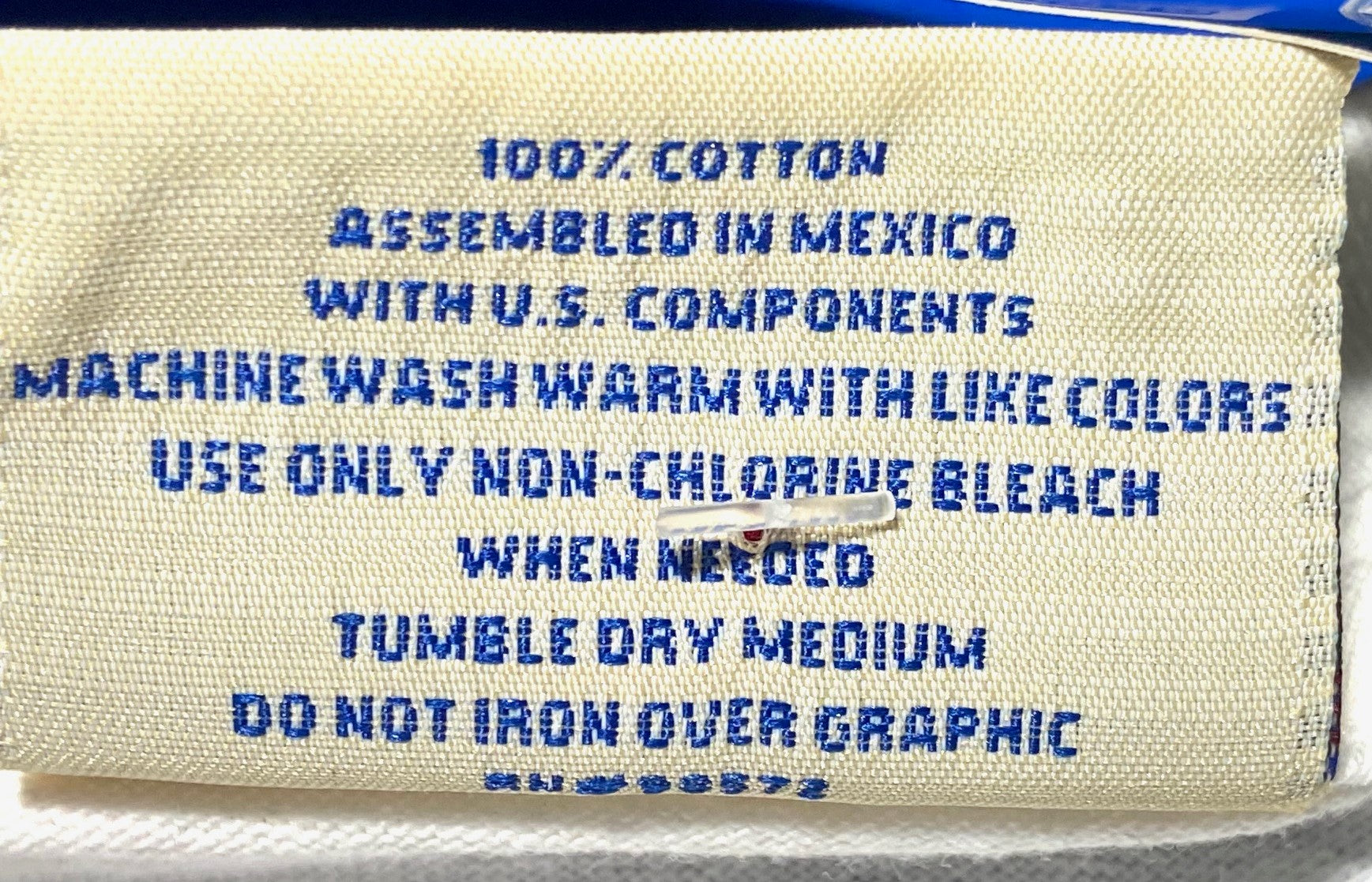Care instructions: Machine wash warm with like colors -- Use only non-chlorine bleach when needed -- Tumble dry medium -- Do not iron over graphic --
