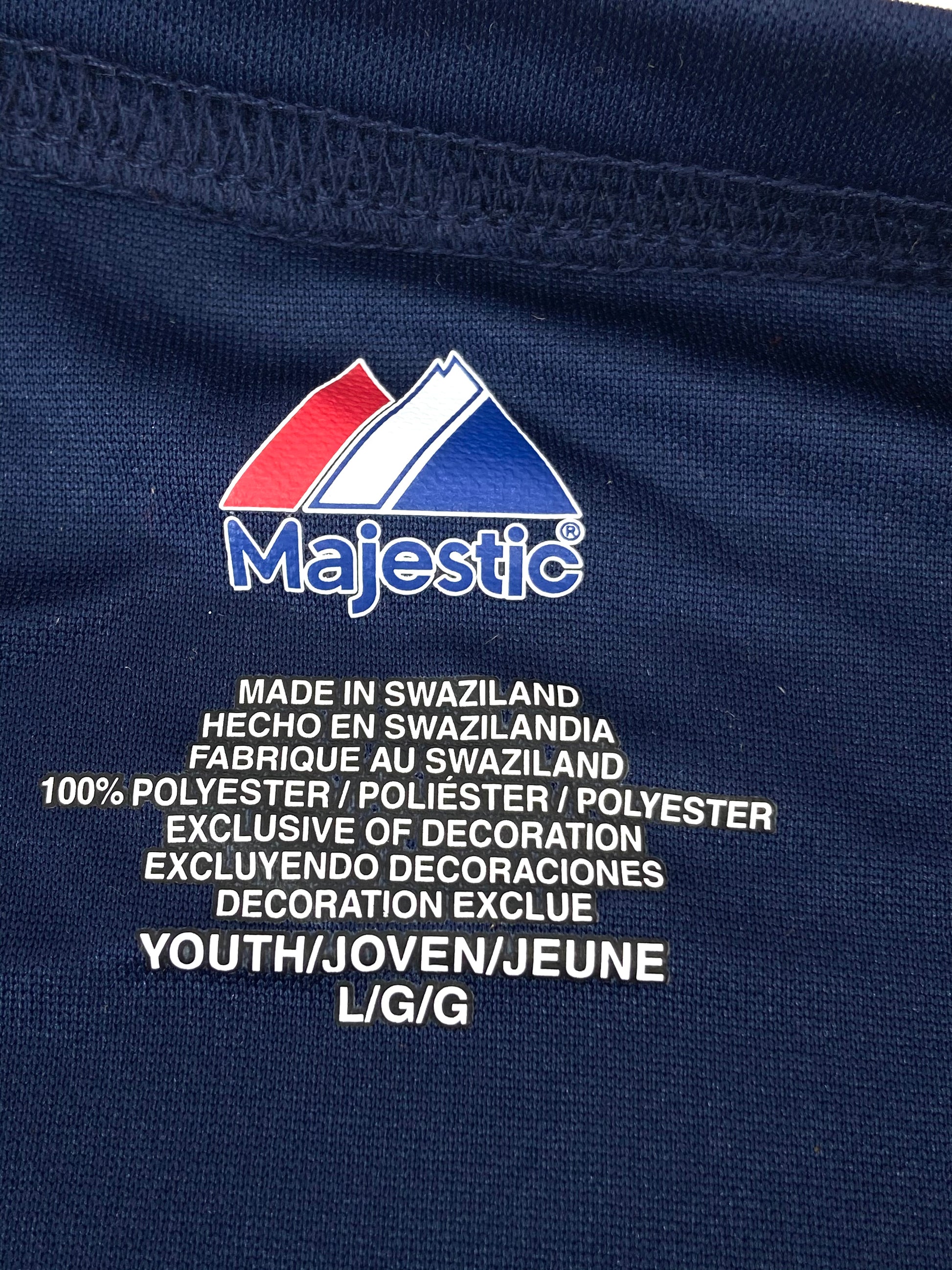 Majestic's Cool Base T-Shirt with Cool Base Technology is made with interlocking moisture-wicking fabric for a lightweight, breathable feel in two sizes. First, we offer a Youth Large (12-14) size. (For your information, we measured and got 18 1/2" across the chest, and 25" top to bottom.)