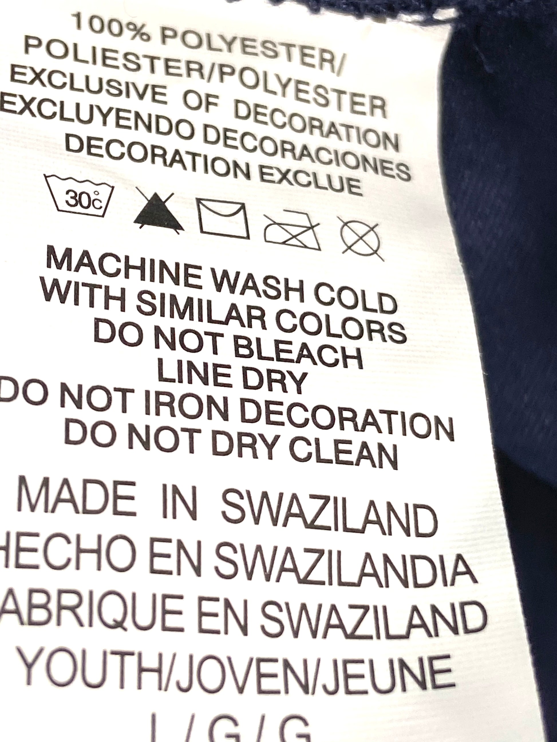 Care instructions: Machine wash cold with similar colors -- Do not bleach -- Line dry -- Do not iron decoration -- Do not dry clean --