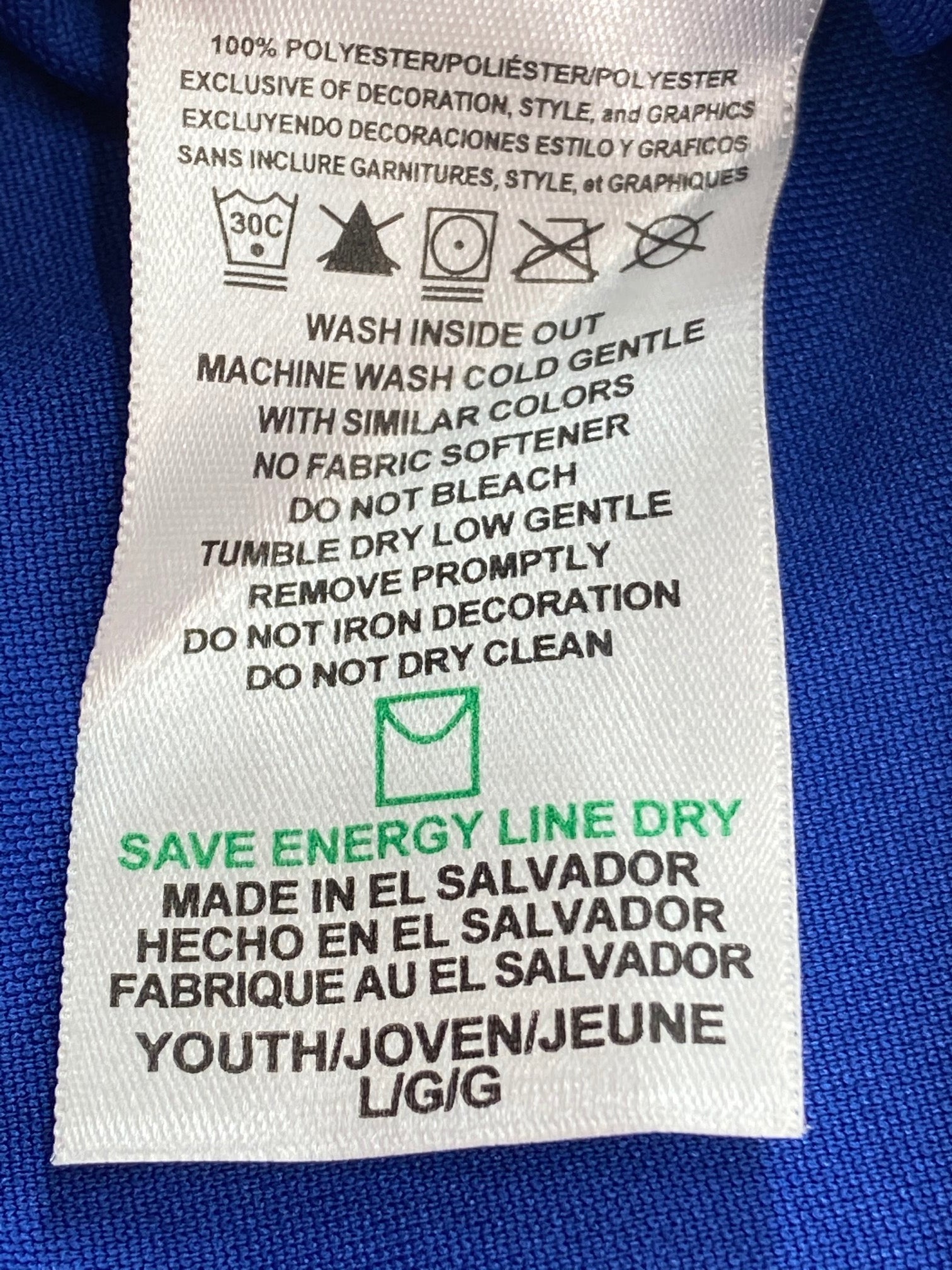 Care instructions: Wash inside out -- Machine wash cold gentle with similar colors -- No fabric softener -- Do not bleach -- Tumble dry low gentle, remove promptly -- Do not iron decoration -- Do not dry clean --