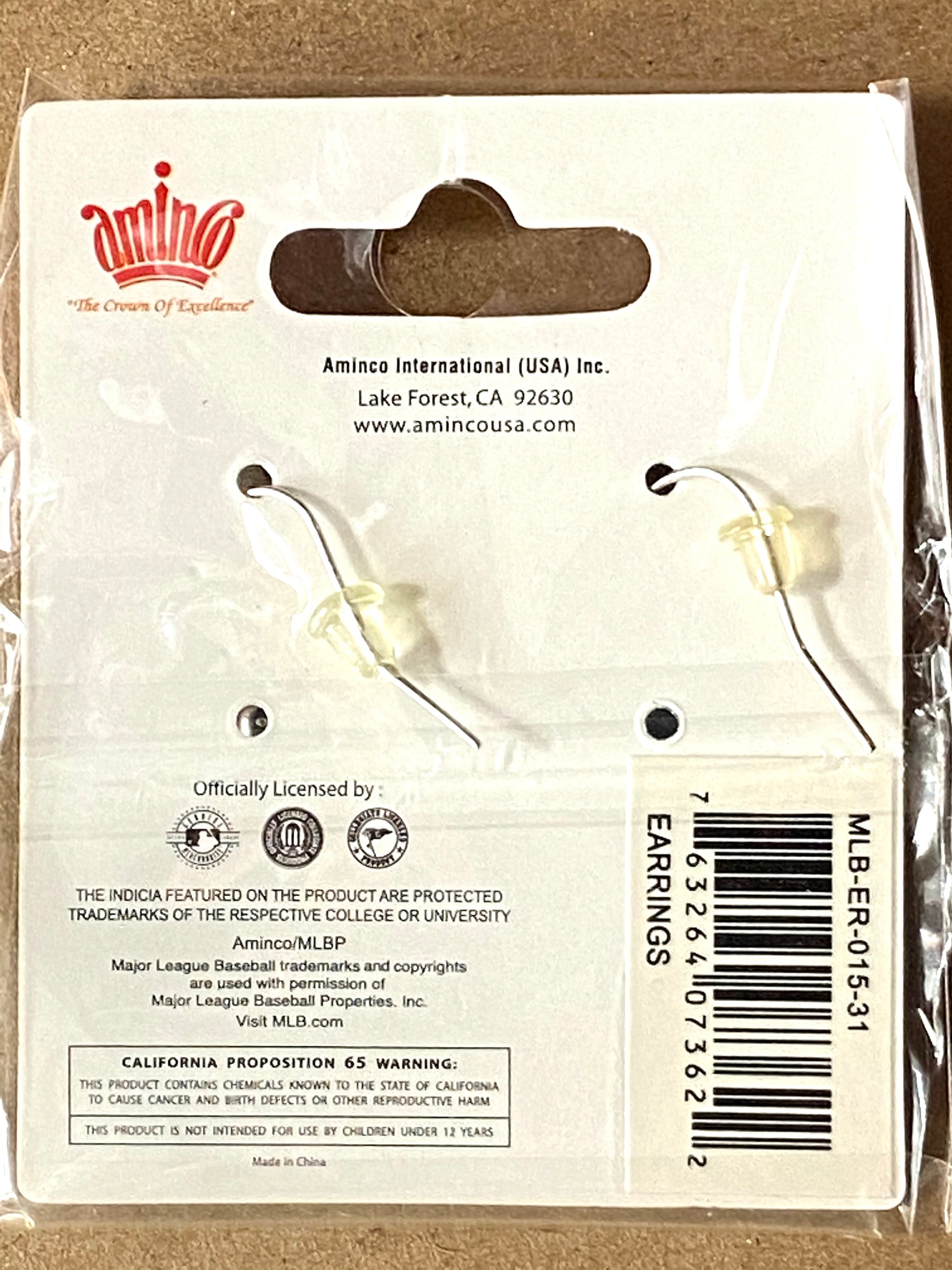 How about some wonderful earrings from the Washington Nationals? Better yet, how about some hypoallergenic NOS earrings from the World Champion Washington Nationals? We're happy to say that we have some in stock and ready to go! The Nationals' logo makes for a great earring and we know you'll love the way it looks. China.