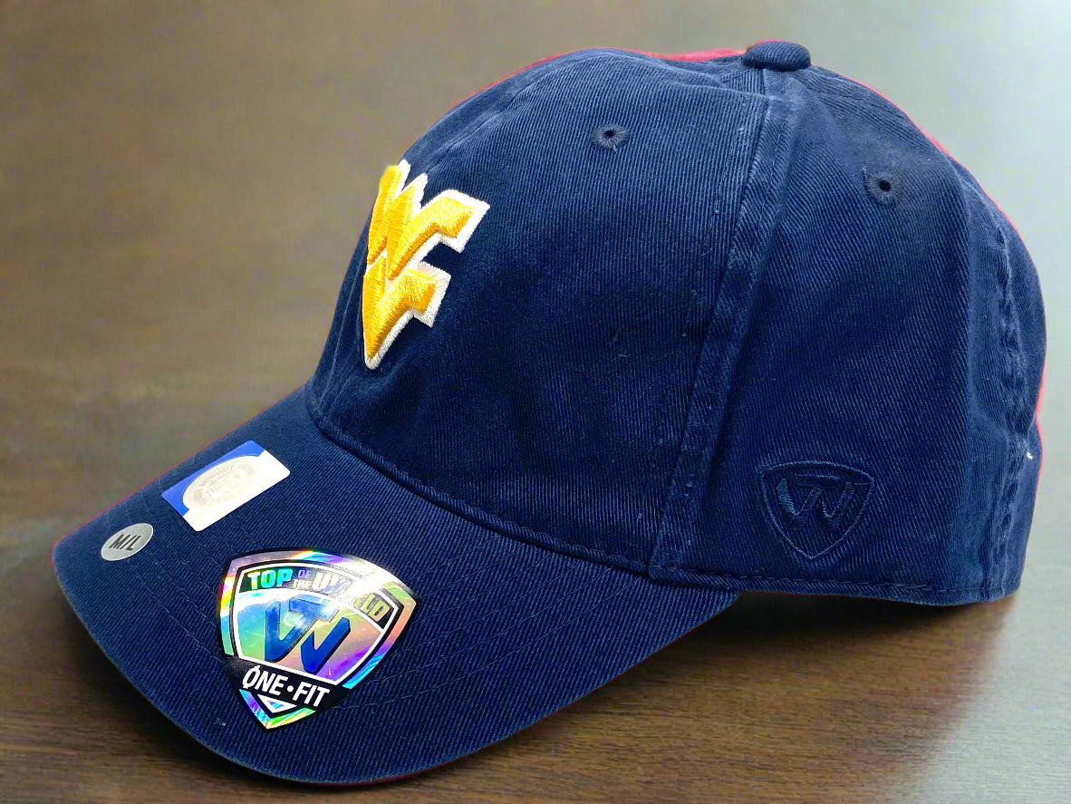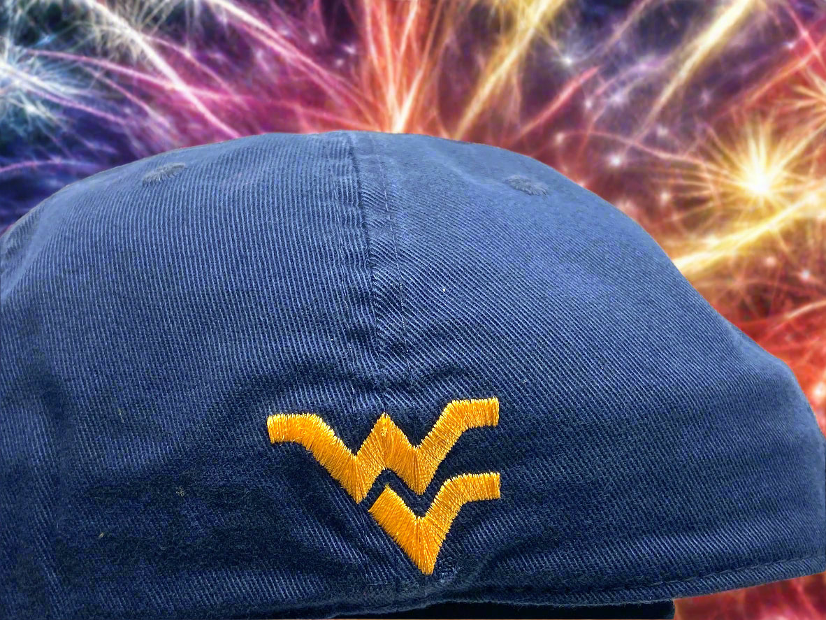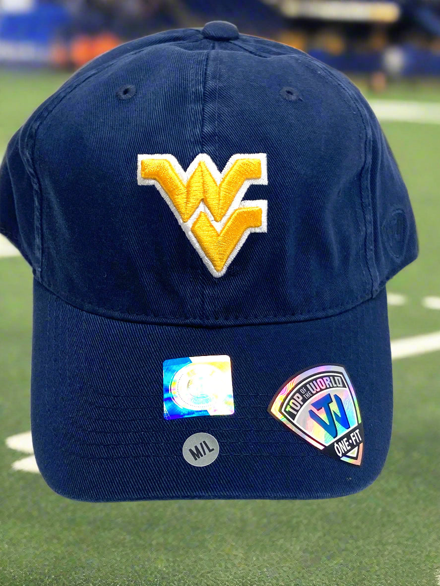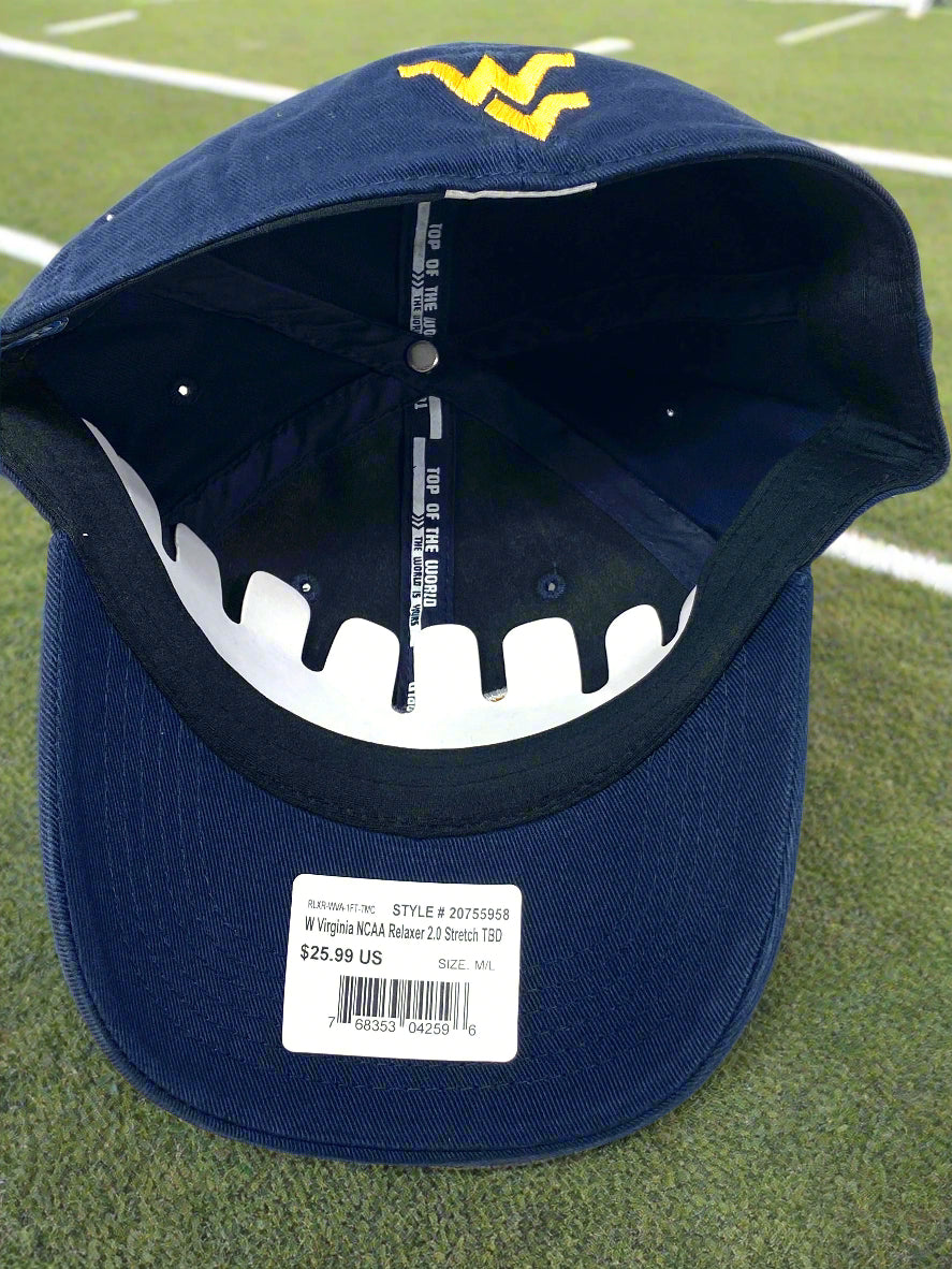 This is one fine West Virginia ball cap, courtesy of Top of the World. It's a "One Fit" NOS OSFA that's 97% cotton and 3% Spandex with rich 3-D embroidery. It's Adult Size M/L, complete with hanging hook and stickers; you're going to love it! Bangladesh.
